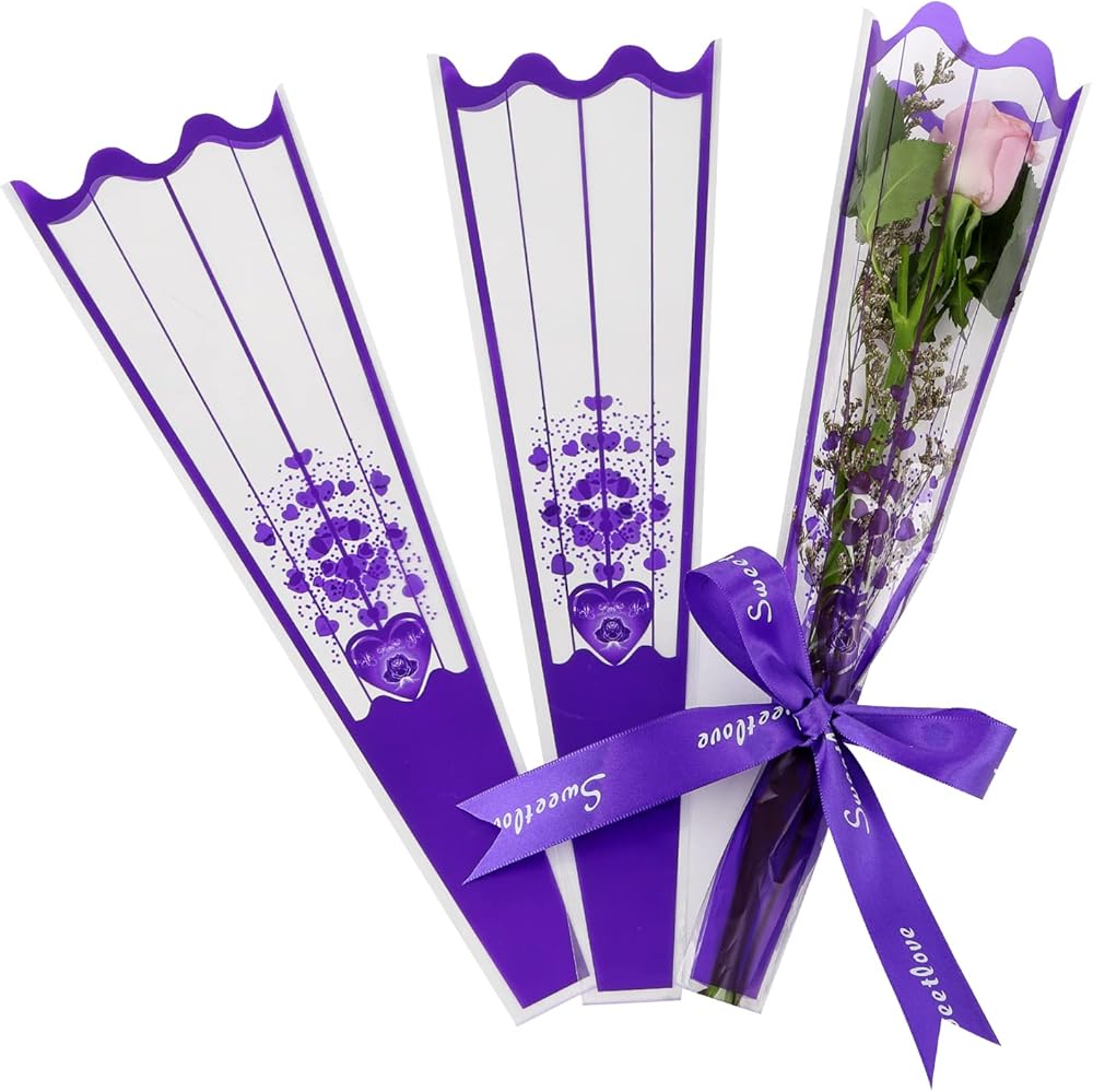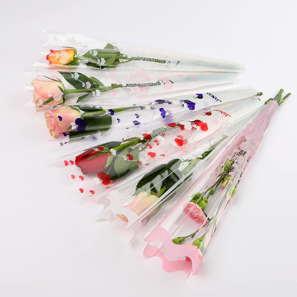• Size &package includes: 100 Pieces of premium single rose package bag, 1 color,enough quantity to meet your different needs.Clear flower bags sleeve , open at both ends, unprinted on both sides,trapezoidal design, convenient and practical bouquet bags,The flower sleeve measures about Height: 14.37inch; Upper Width: 4.72inch; Bottom Width: 1.37inch