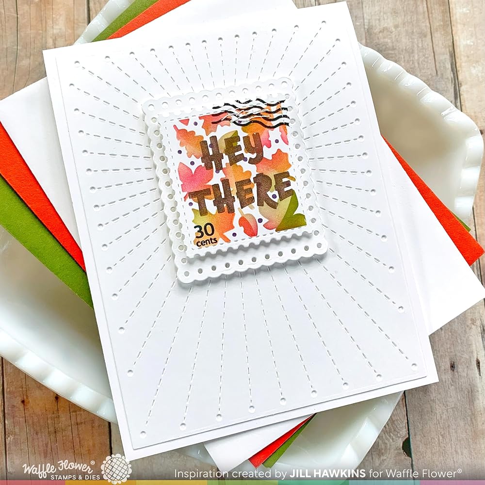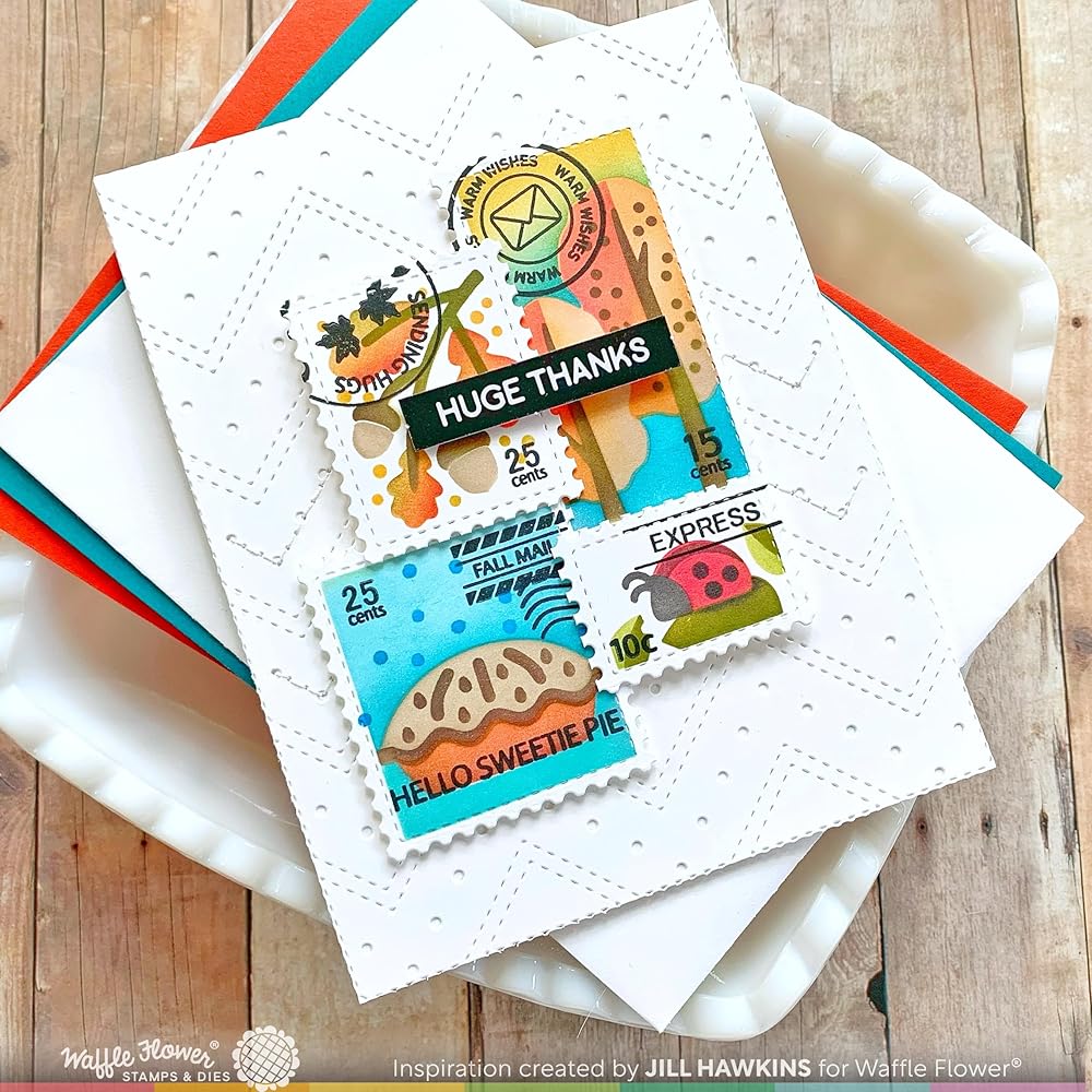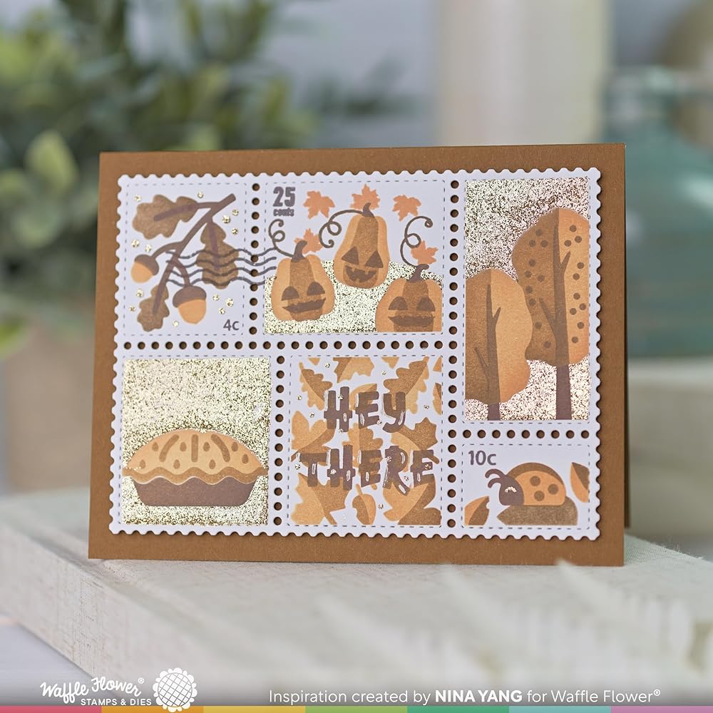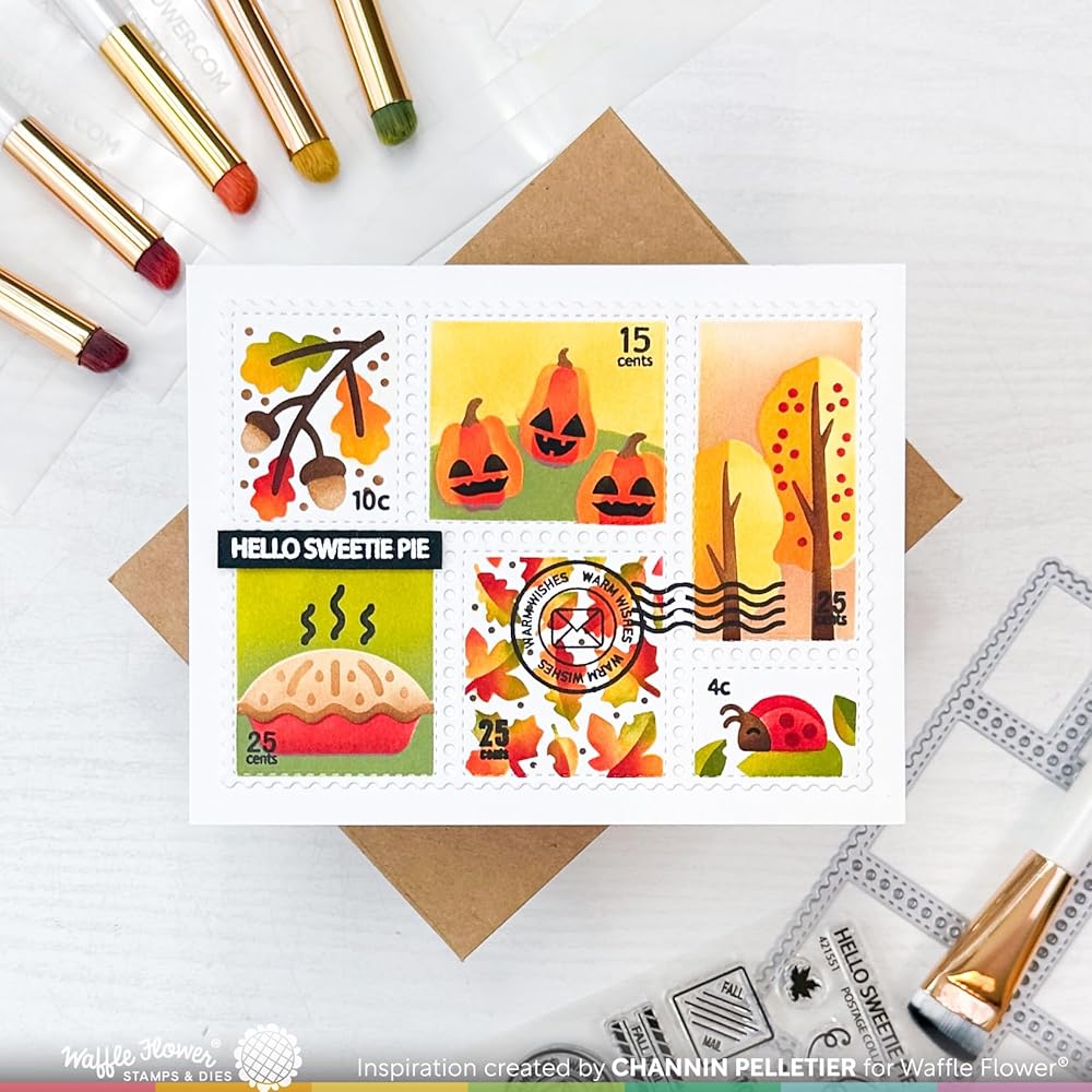 This stencil trio includes all the layers you need to make these fun Fall icons. There are etched lines to help you align the layers to the Postage Collage Die. Try using glitter paste on any of the layers to add sparkle and shine to your project.