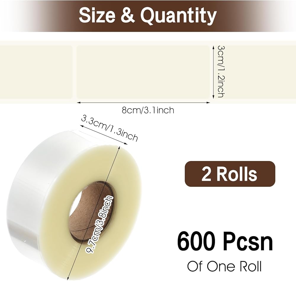 Size Information: You will receive two rolls of clear stickers for sealing, each roll contains 600 pieces of clear rectangular stickers, and the size of a single clear sticker labels is 80 x 30mm/3.1 x 1.2inch, which can fully cover most barcodes