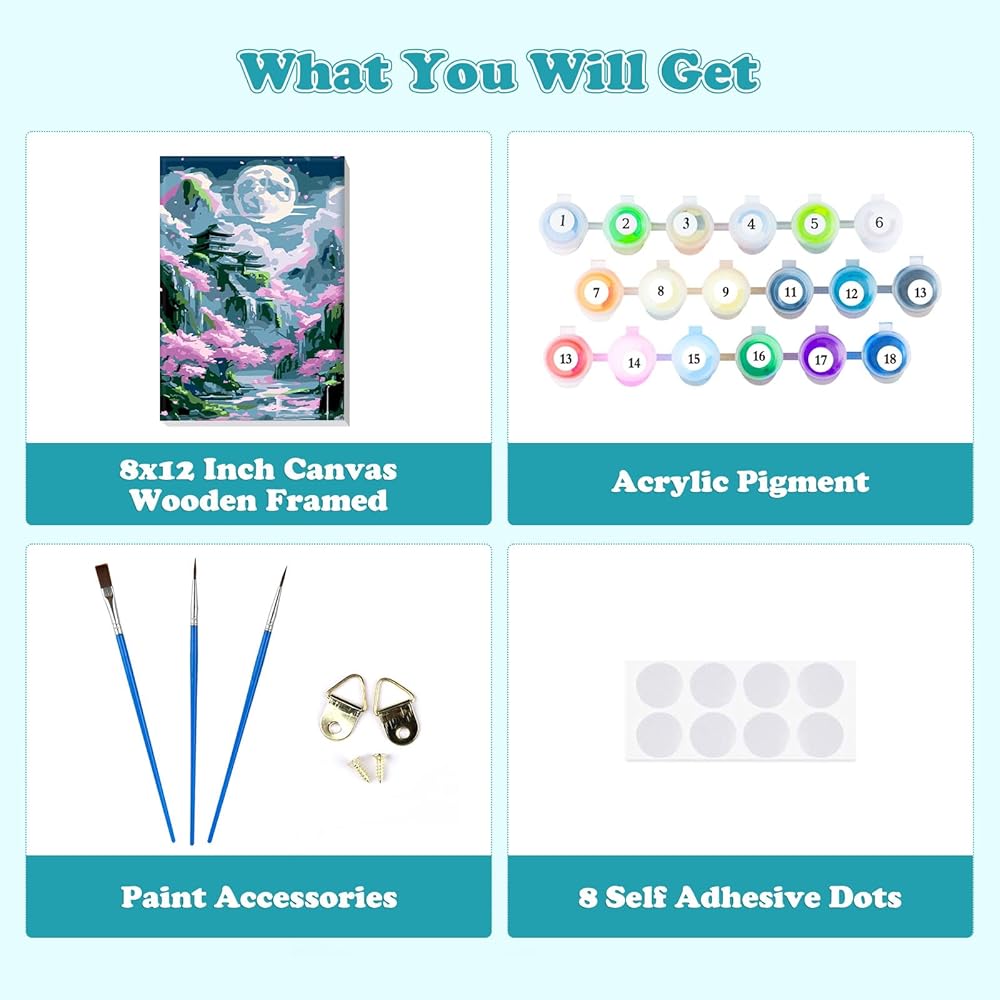 • الطلاء بأرقام أرقام: 8 × 12 بوصة حجم قماش مع إطار ، ونمط بسيط ولطيف ، واضحة المطبوعة مسبقًا ، ولا توجد مهارات في الطلاء. فقط بحاجة إلى متابعة الأرقام الموجودة على القماش وبعد ذلك يمكنهم إنشاء لوحة رائعة بمفردها