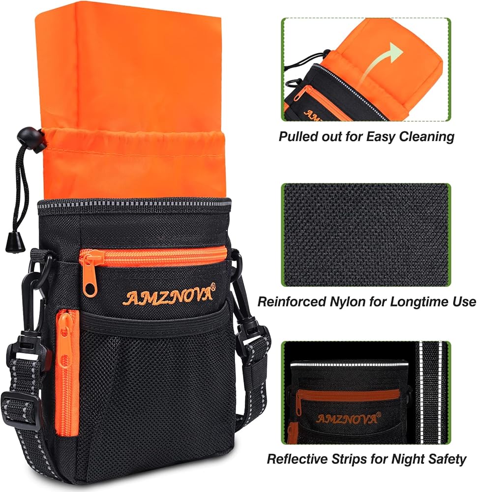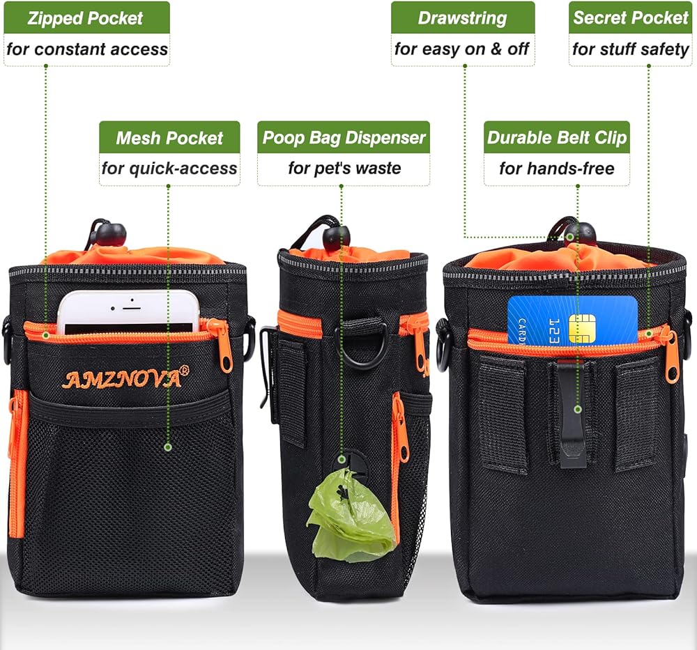 حقيبة علاج الكلب Amznova ، حقيبة تدريب كبيرة على الكلاب مع قابلة للتعديل يجب أن تكون حزامًا ، حزامًا ، موزعًا للأكياس ، سهلة حمل جميع العناصر الكلب ، الأسود