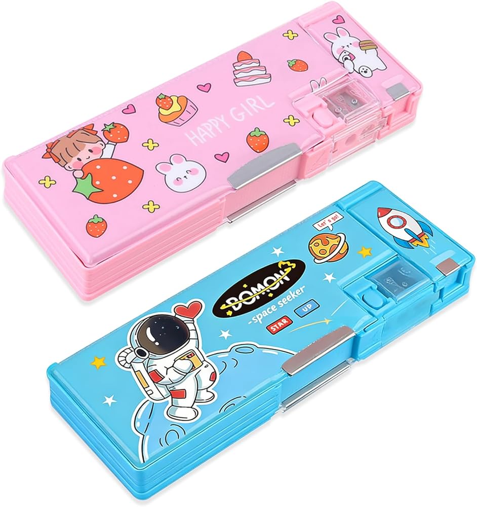 ♥ 【البناء الصلب】 علبة قلم رصاص مصنوعة من البلاستيك عالي الجودة ، المحمولة ، الصلبة ، المقاومة ، غير سامة وغير ضارة. هذه القرطاسية المنظمة الكبيرة متينة للغاية ومصنع للأطفال لفتح وإغلاق الأزرار كما يحلو لهم.