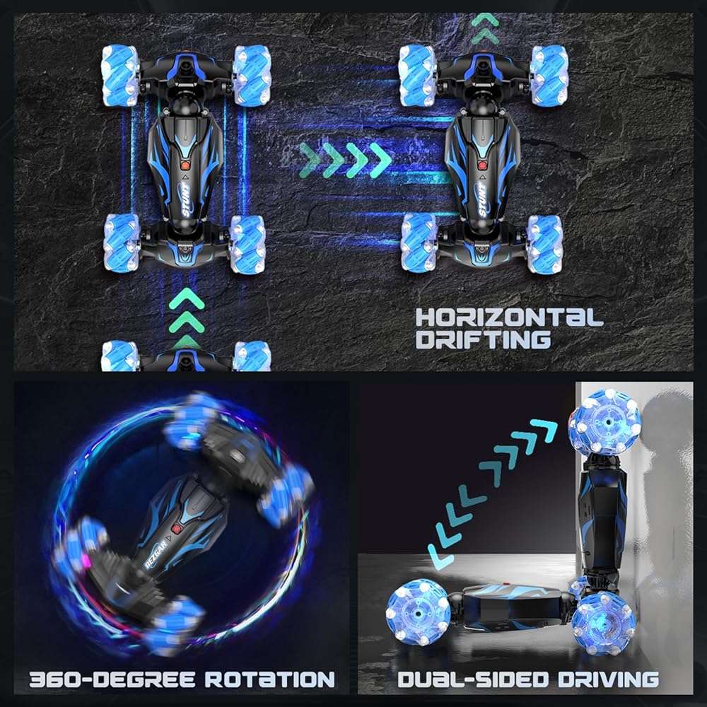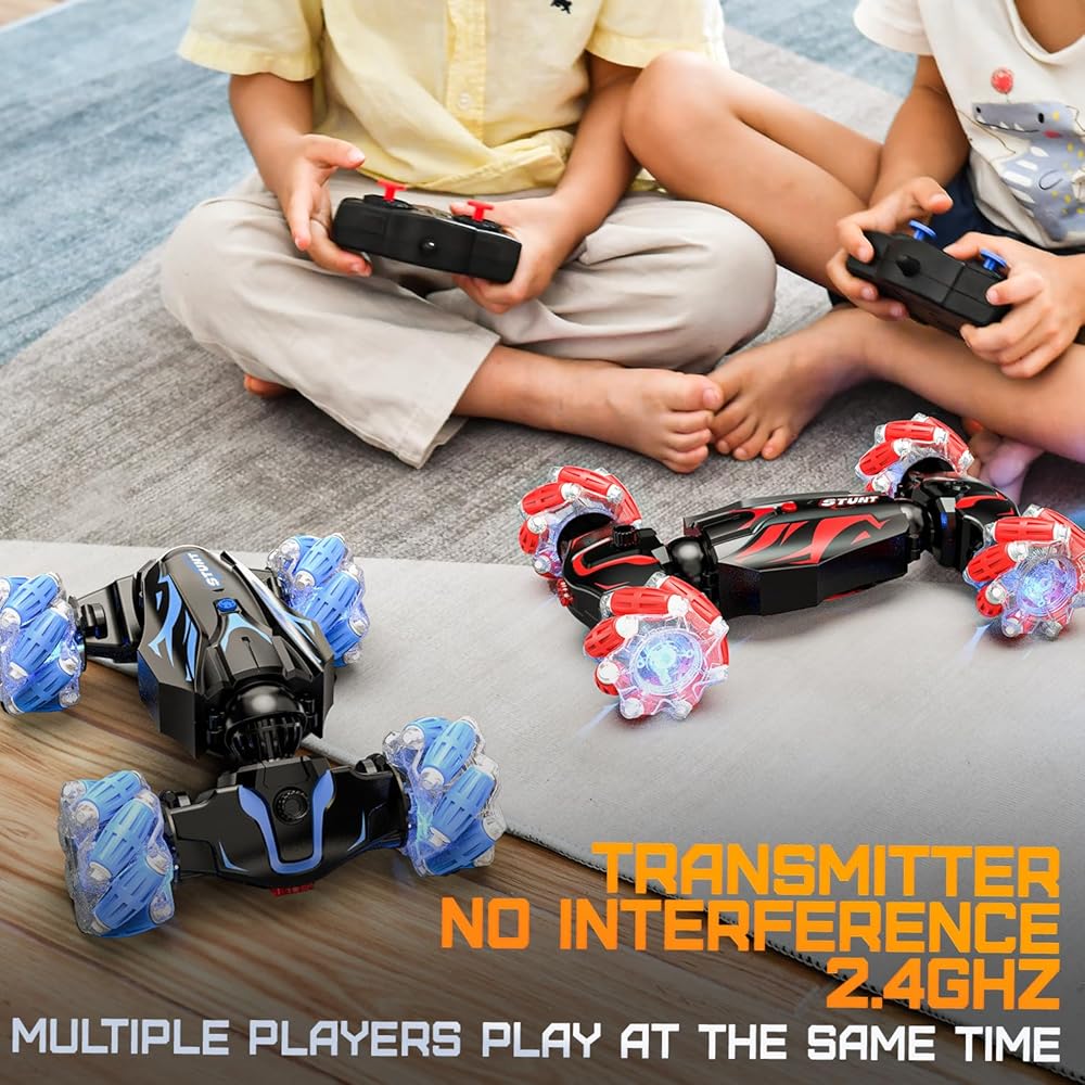سيارة التحكم عن بُعد - سيارة استشعار الإيماءات RC Stunt مع الضوء والموسيقى ، والسيارات الداخلية/الخارجية في جميع أنحاء التضاريس 2.4 جيجا هرتز للأطفال ، وسيارات ألعاب قابلة لإعادة الشحن ، وهدايا أعياد الميلاد للأولاد