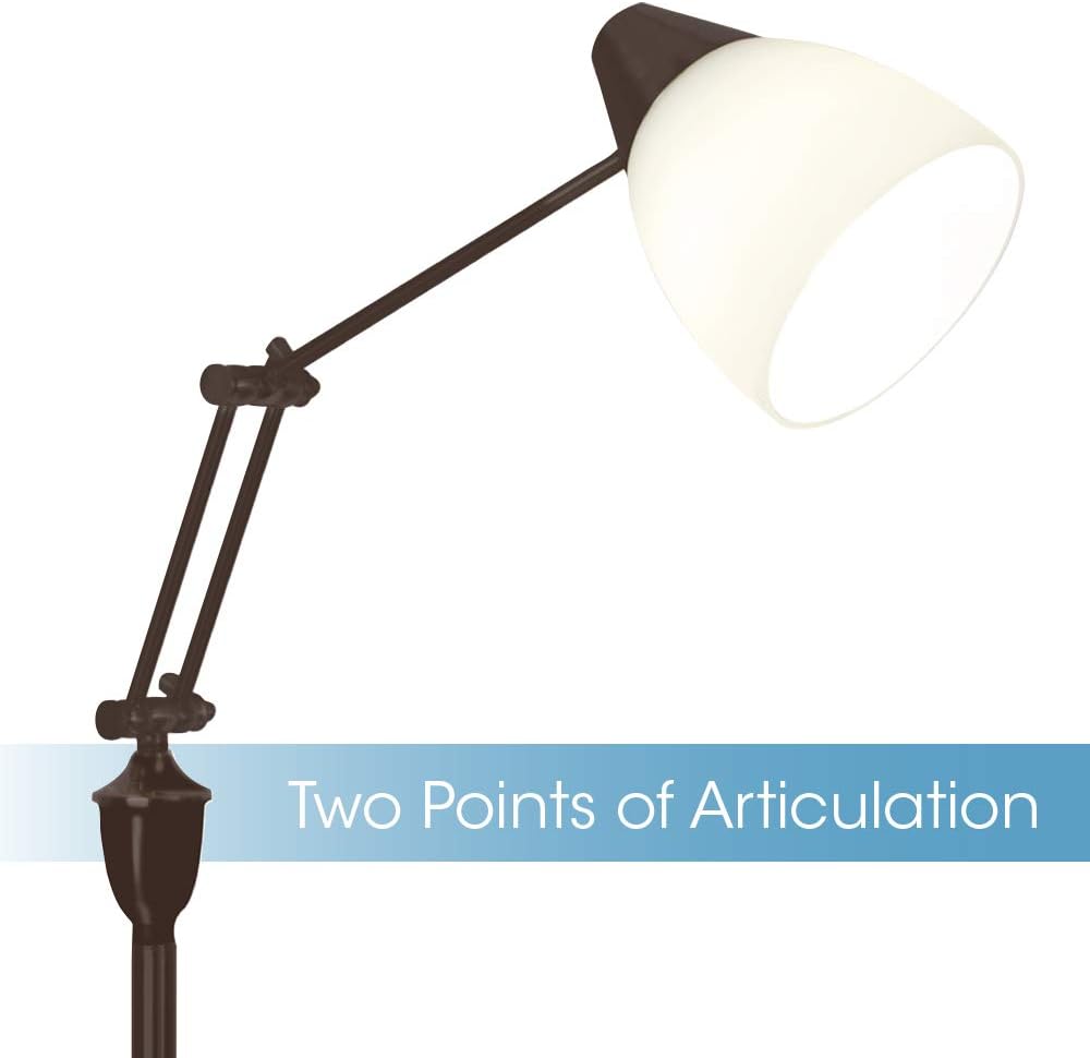 Ottlite Webster LED LED مصباح LED القابل للتعديل - النهاية البرونزية المعدنية ، التصميم المعاصر الحديث ، الظل الزجاجي القابل للتعديل ، مفتاح خطوة الأرضية ، للقراءة والصياغة