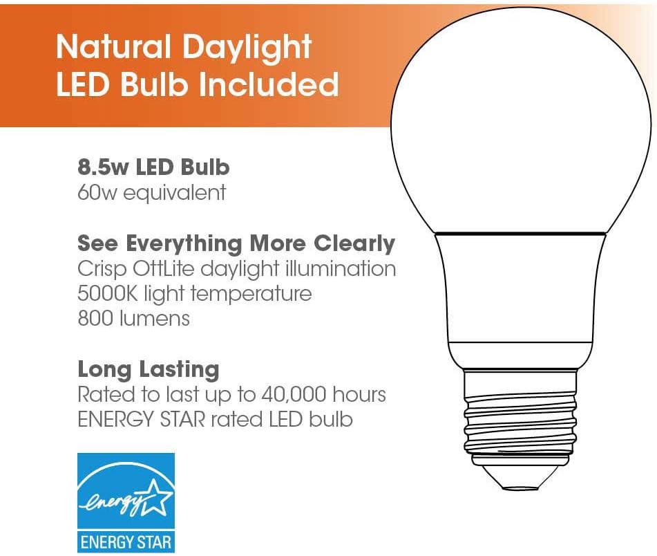 ضوء النهار الطبيعي: ركز المهندسون والباحثون في Ottlite على جلب قوة ضوء النهار الطبيعي في الداخل. يُظهر الإضاءة في ضوء النهار Ottlite ألوانًا بدقة وتفاصيل مع وضوح مذهل وانخفاض الوهج والمجهب.