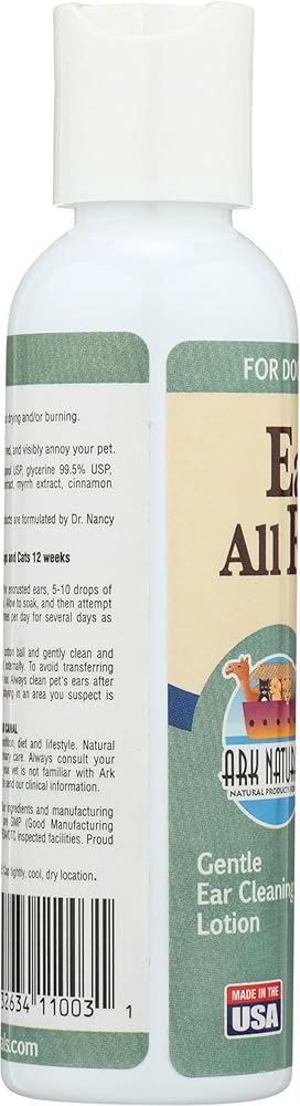 Ark Naturals Ears All Right is a gentle ear cleaning lotion formulated by an herbal scientist using only premium botanicals. Ears All Right is a natural botanical formula that works to break down and remove wax, dirt, and foreign debris. Helps heal and prevent infection from minor scratches and insect bites. Relieves issues associated with yeast infections, excessive wax build up, ear odor, and allergies. Made in the USA.