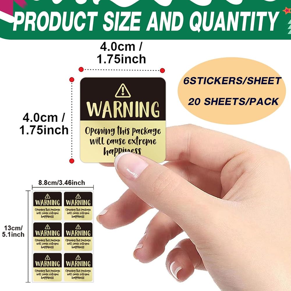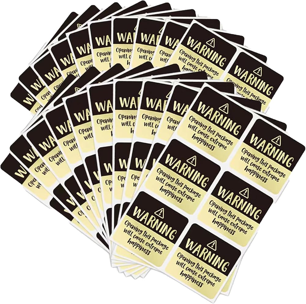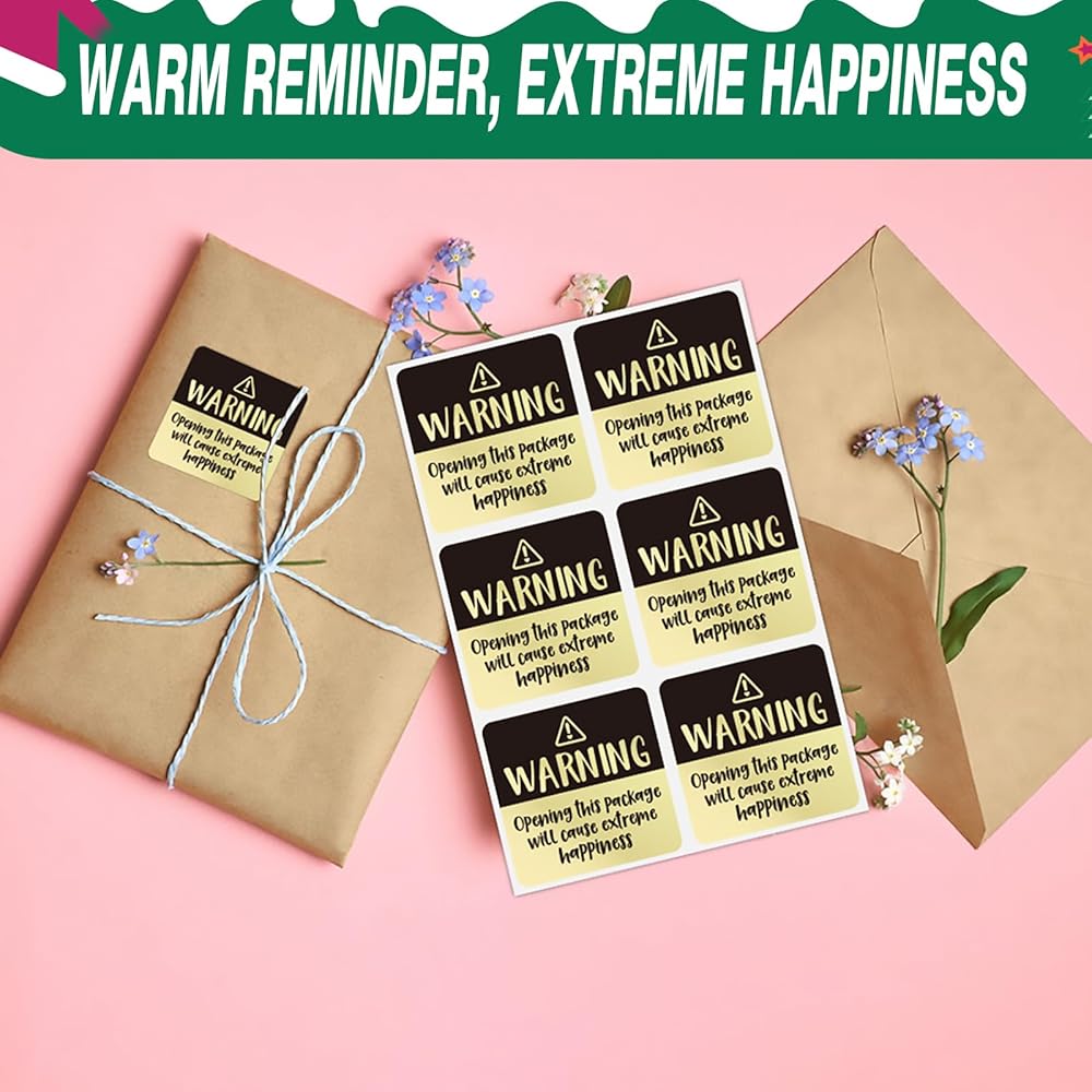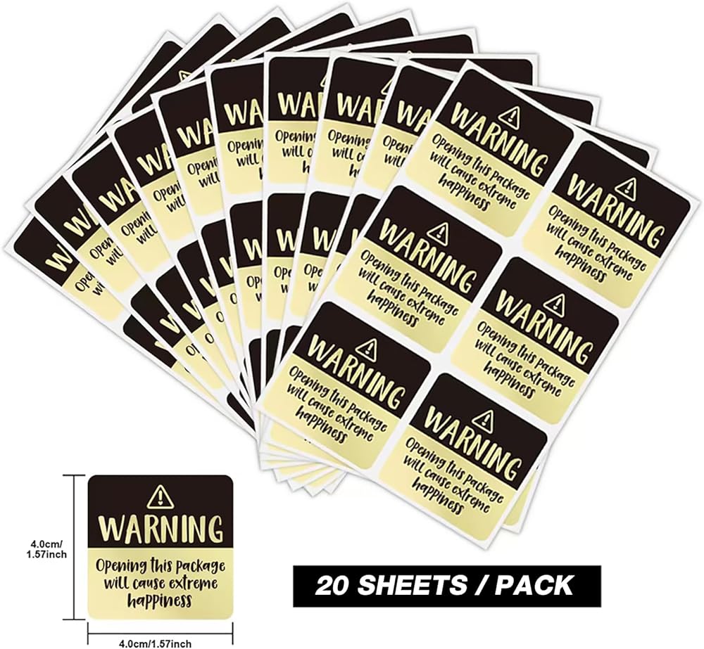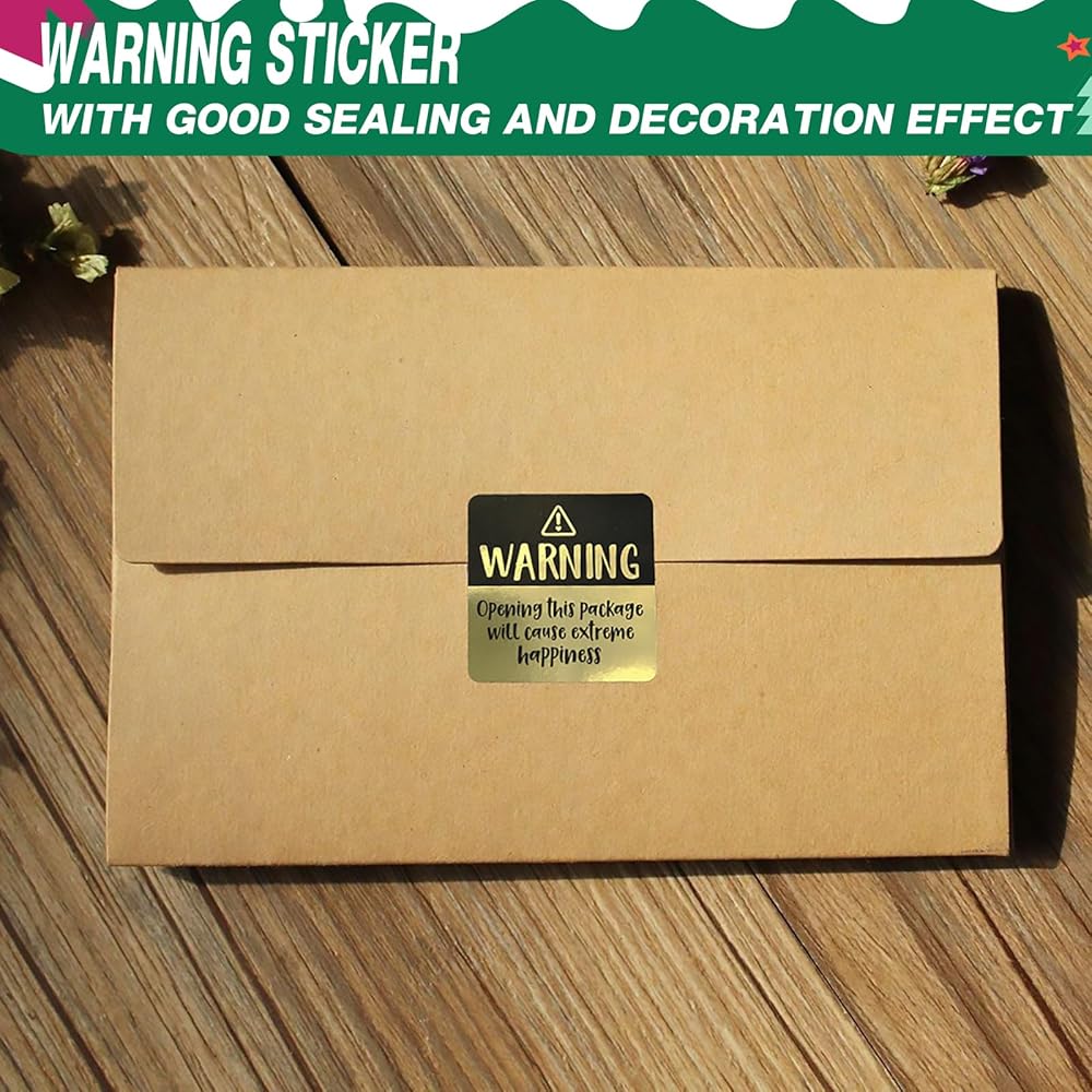 【تصميم لطيف】 تم تصميم ملصقات السعادة المطلقة هذه بعناية من قبل الفريق الإبداعي ، مع طلاء لامع على السطح الخارجي. تتميز الألوان بين الذهب والألوان المبهرة ، وتتم طباعة الكلمات "تحذير" و "فتح هذه الحزمة بشكل واضح". يذكر النص اللطيف العملاء أو المستفيدين من السعادة النهائية القادمة ، مما يجلب لهم المزيد من المفاجآت والفرح.