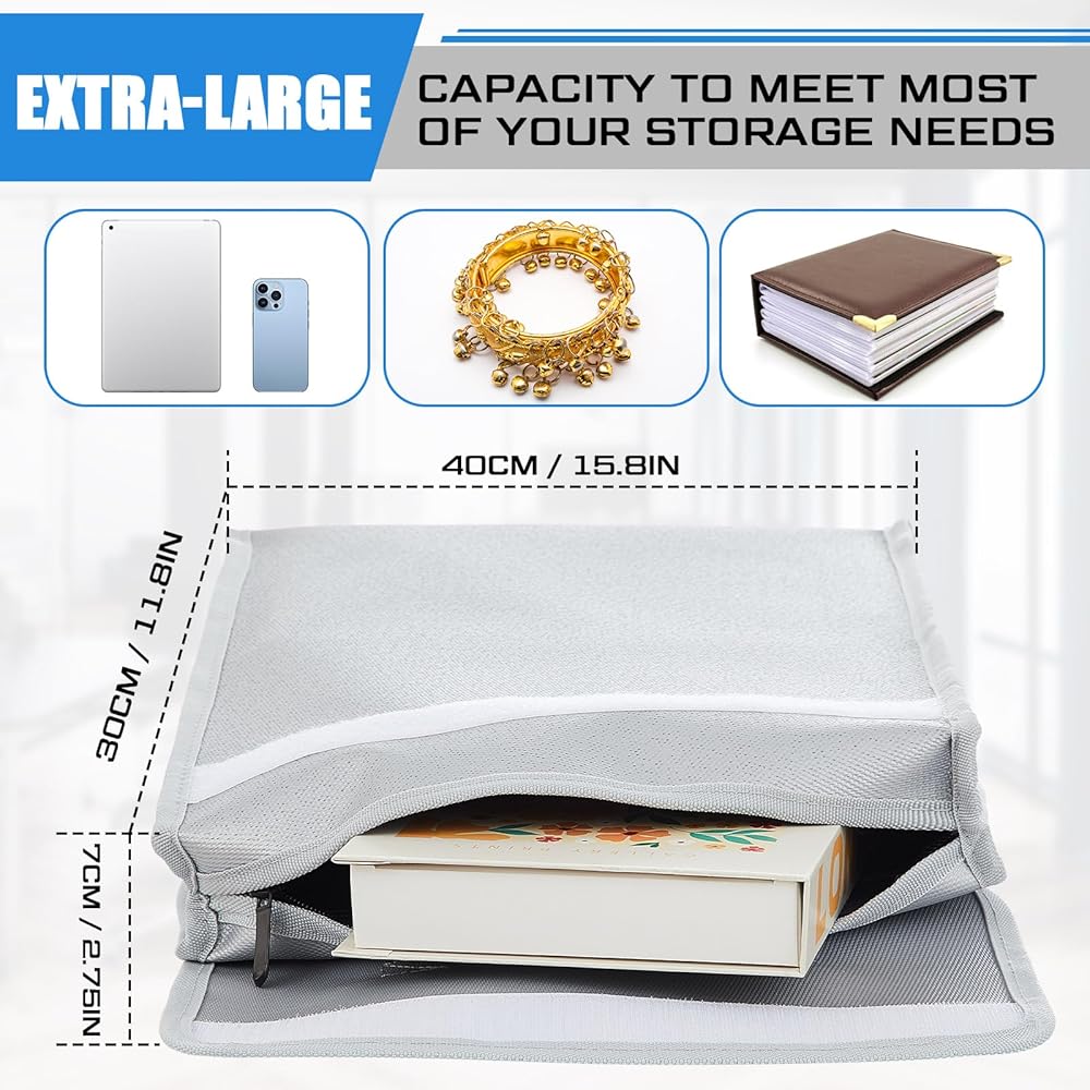 Material for Ultimate Protection: protect your essential documents and valuable items with these large capacity fireproof bags, designed from upgraded silicone coated fabric; With an impressive size of 15.8" x 11.8"×2.8", these bags provide unrivalled protection against fire and wildfire, allowing for reliable preservation of your belongings in a variety of situations, ideal for both daily and emergency use