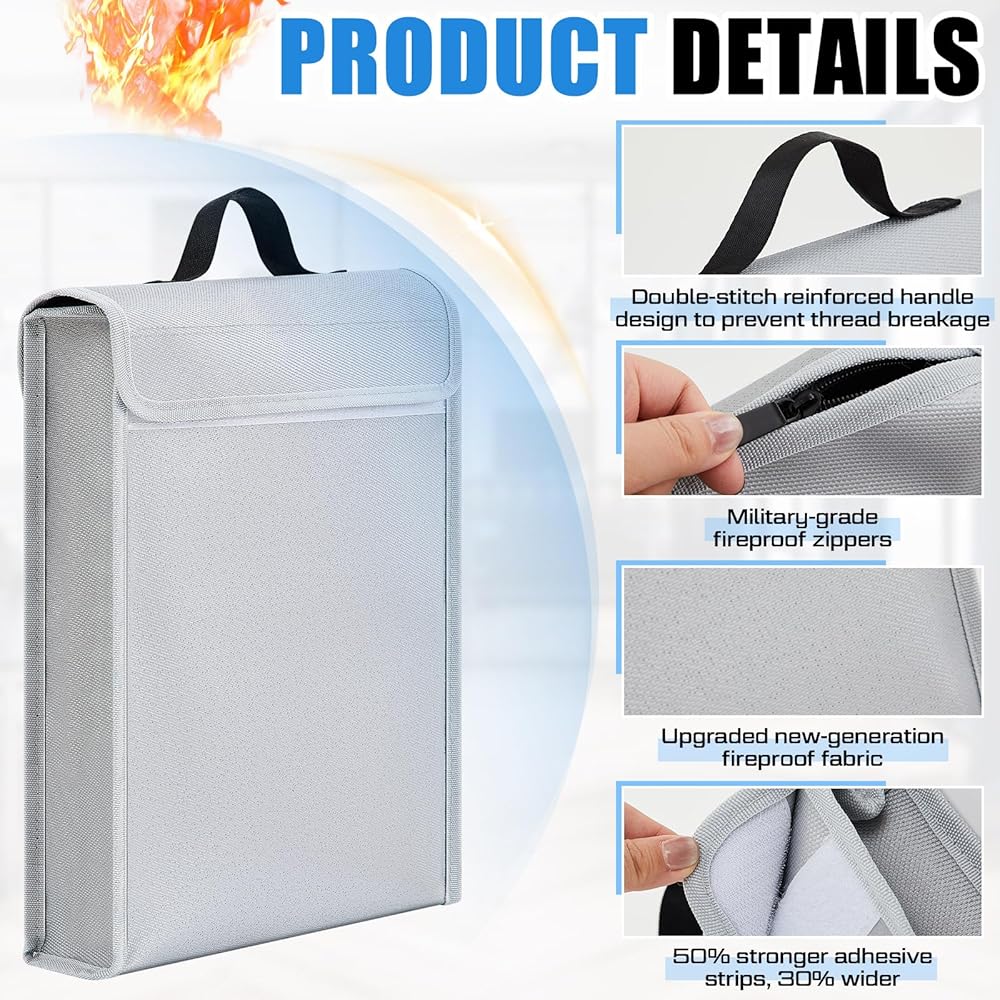 Convenience: comfort and robustness meet in the durable strap and versatile design of the fire proof bag for documents; Crafted for carrying convenience, this feature, coupled with the bag's enduring material, makes for a handy and secure option to safeguard your items