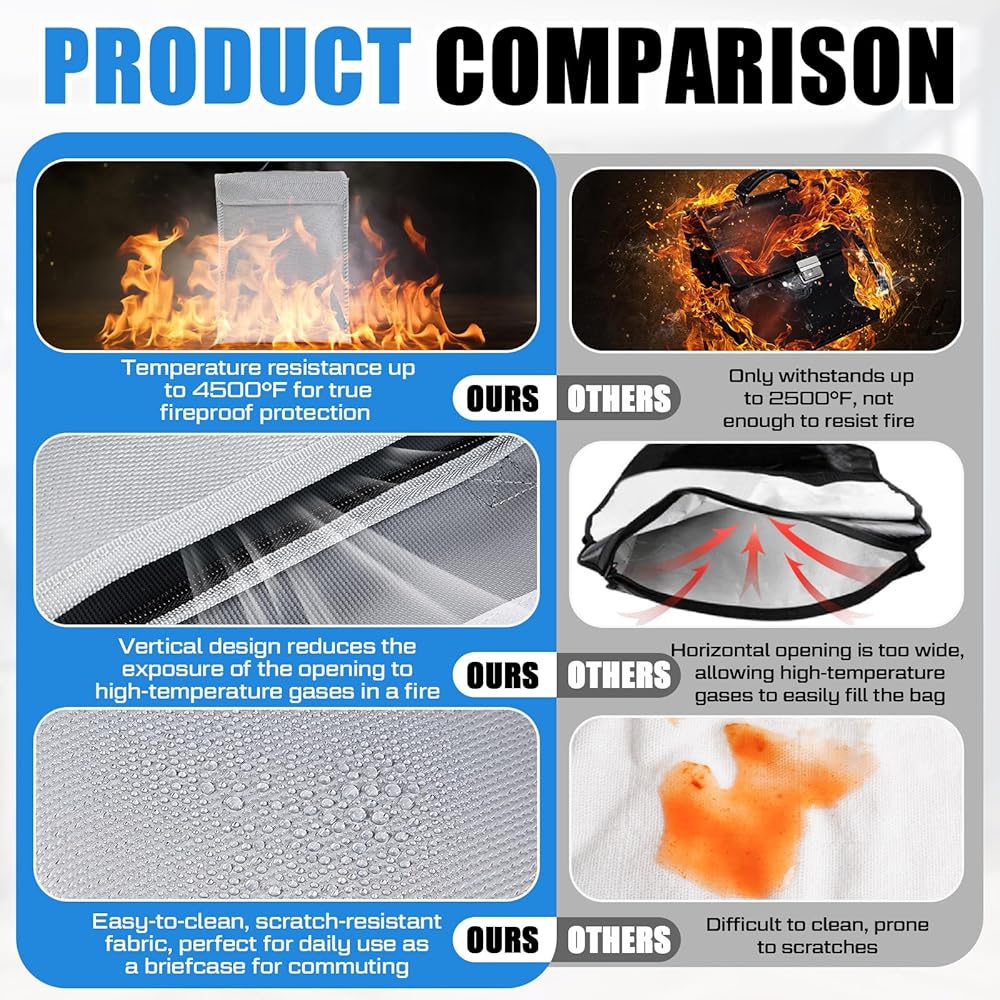 Efficient Double-layer Design: employing a double-layer fireproof insulation material, these fireproof bags safeguard your valuables by providing extensive resistance to fire and heat; This superb design enhances the bag's overall durability, ensuring that your items are safe from fire and thermal accidents