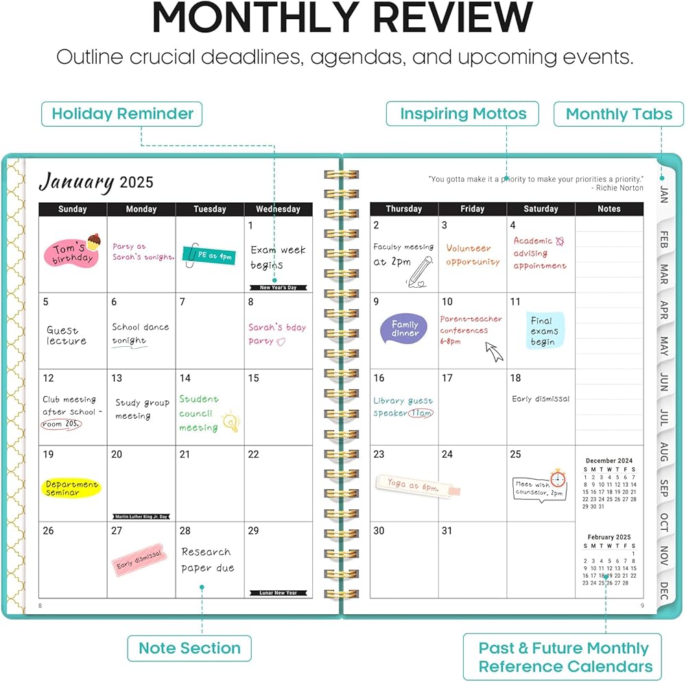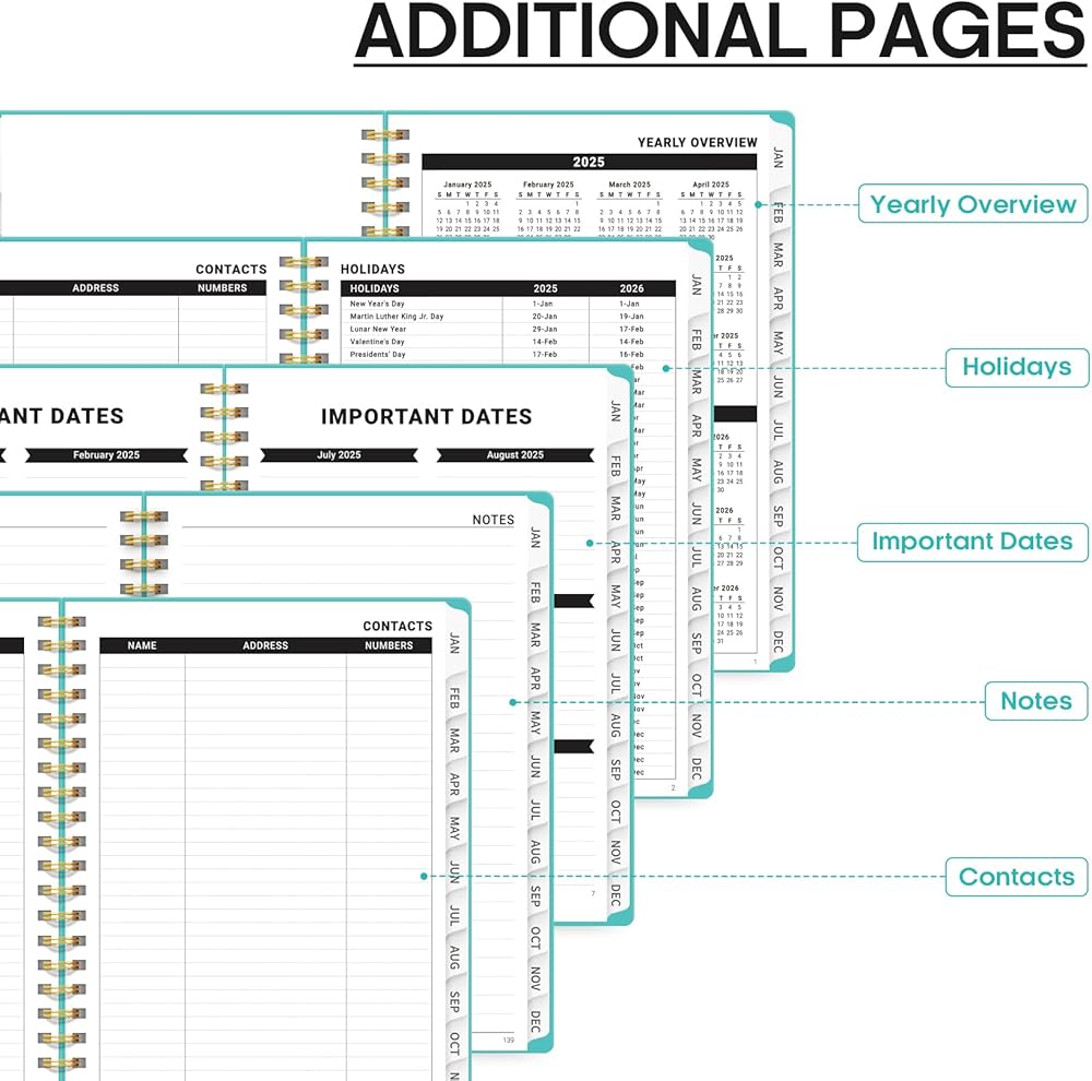 Organize and Inspire: Offer the structure and encouragement of Taja's 2025 Planner. With its functional design, inspiring elements, and practical features, it's the perfect choice for anyone who values organization and efficiency. End the year strong with a planner that supports your every step.