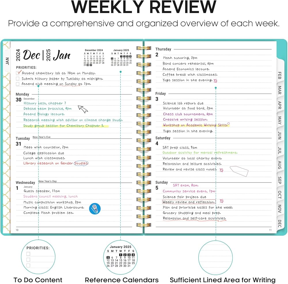 Versatile for All: Perfect for office worker, professionals, students, and homemakers alike, this planner meets the diverse needs of any busy individual. Use it to manage school assignments, work projects, family events, and personal goals – all in one convenient place.