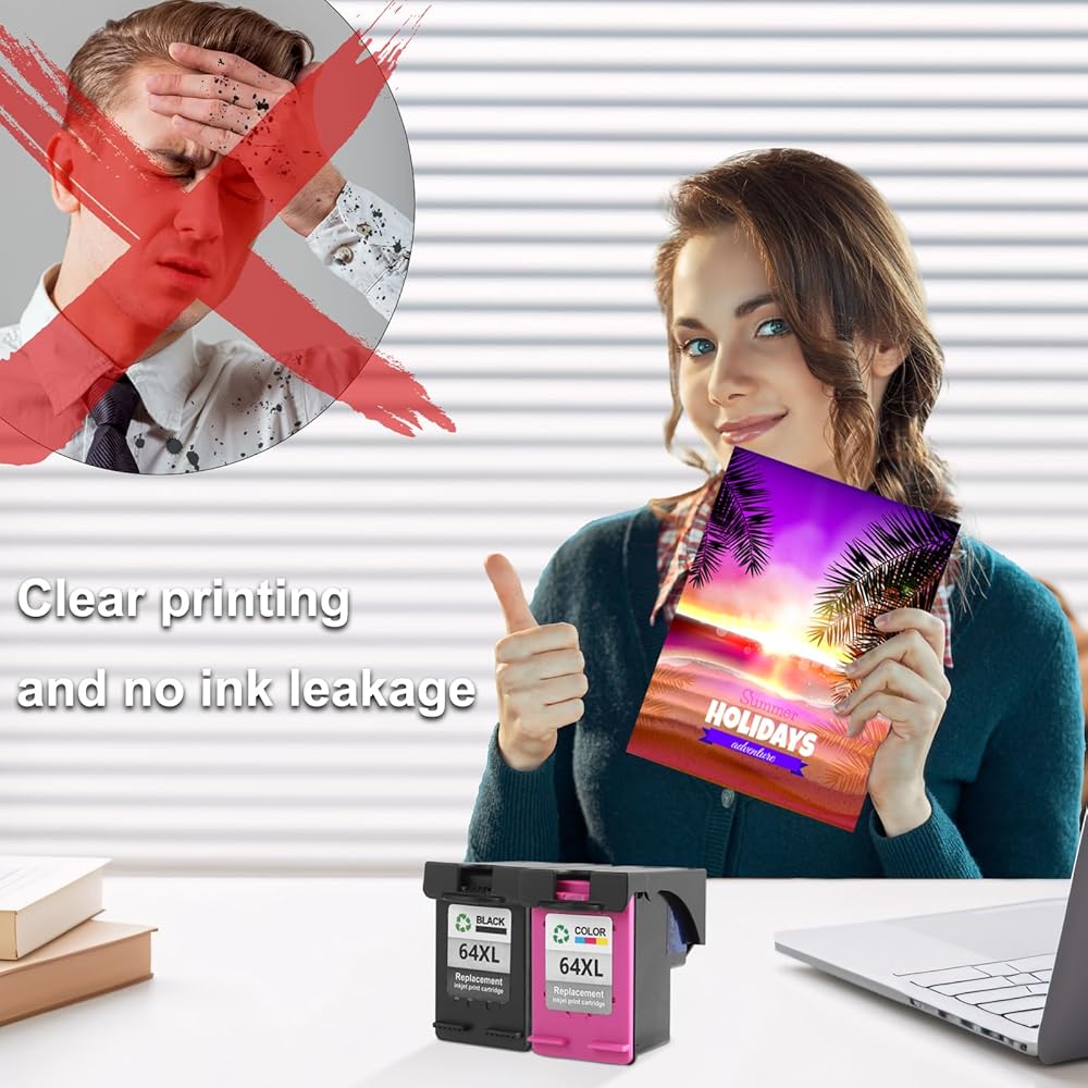 خرطوشة الحبر 64XL لـ HP 64 حبر خراطيش الحبر (أسود ولون) حزمة التحرير والسرد لـ HP 64XL خرطوشة الحبر عالية العائد ملائمة لصور الحسد 7855 7858 7155 7120 6252 6255 7800 7100 7158 7164 Tango X Terra Printer