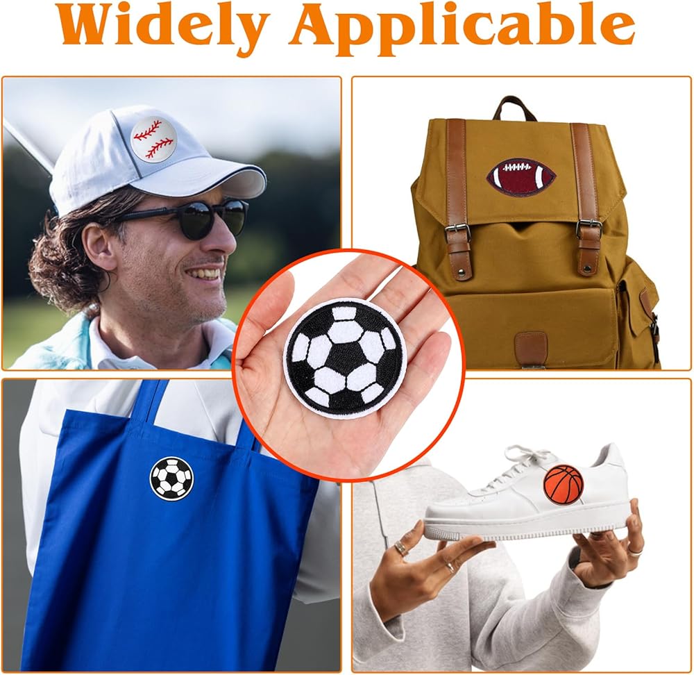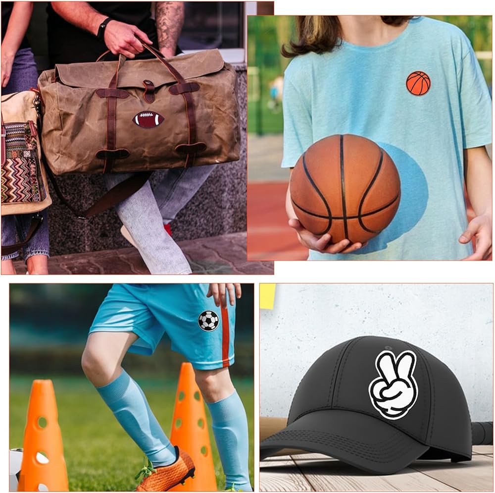 Wide Applications: The baseball basketball soccer football iron on patches can be applies to decorative purposes or to cover holes or stains on clothes. The iron on/sew on patches can be attached to shirts, jackets, jeans, pants, dresses, backpacks, hats, quilts, towels, sheets, etc. If you use the pre-ironing method, make sure your clothes or bags can be ironed at high temperatures