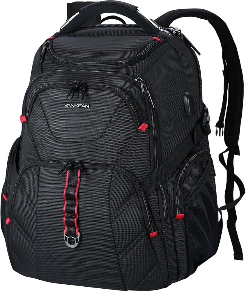 Vankean 17.3 '' Praft Backpack Backpack TSA ودية ومقاومة للماء مكافحة سرقة حقائب الظهر الكلية كبيرة مع جيوب RFID ، ميناء USB للرجال حقيبة عمل تجارية ، أسود