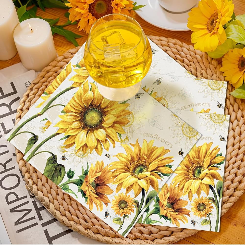Versatile for Every Celebration: Whether it's a sunflower-themed party, a wedding anniversary, a birthday bash, or a casual picnic, these disposable napkins are the perfect complement to any event. They are equally at home in the living room, dining room, bathroom, kitchen, or restaurant, making them an essential addition to your party supplies. Elevate your luncheons and gatherings with a touch of floral flair and get ready to celebrate in style!