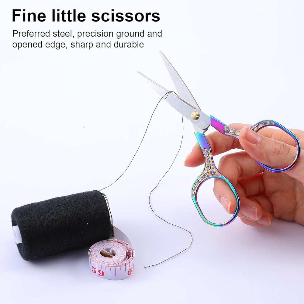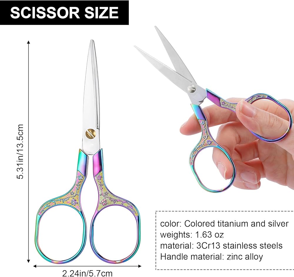 【Convenient and portable】The size of the small pointed scissors is 5.31× 2.24× 0.31 inches/13.5 ×5.7 × 0.8 cm. The small scissors are small and exquisite and easy to carry. The sewing tool scissors cut smoothly and can accurately trim small details such as embroidery, sewing, crafts, thread cutting, hairdressing, etc.