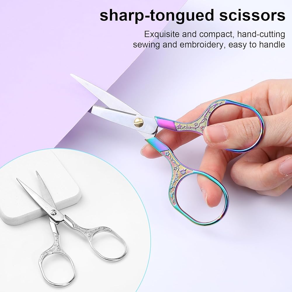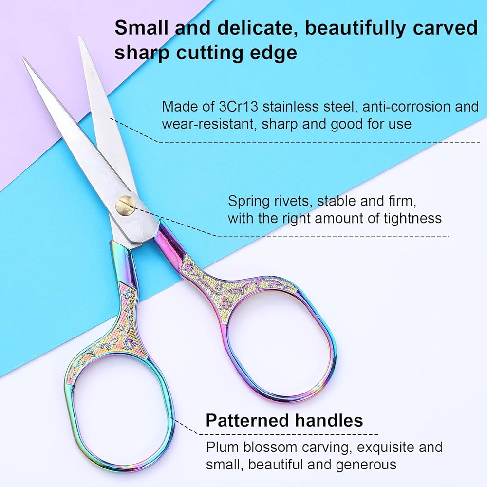 【Exquisite design】This pair of fabric scissors is decorated with beautiful plum blossom patterns, which adds a retro style to the sewing scissors. The silver and colorful appearance is more fashionable and atmospheric. At the same time, the large hole design of the mini scissors is easy to hold, making the craft scissor set more flexible to use.