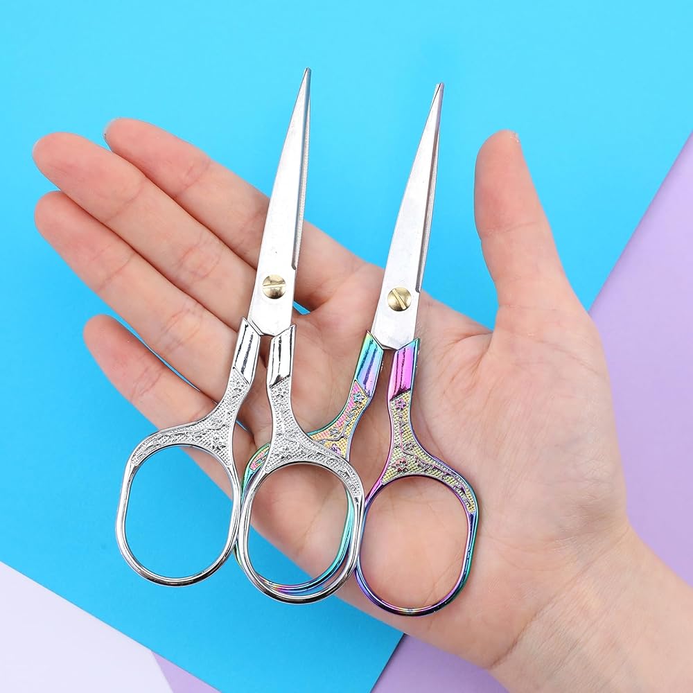 Qianyu 2 Pcs Sewing Craft Embroidery Scissors Small Crochet Precision Yarn Scissors Set Multi Purpose Detail Vintage Scissors All Purpose for Sewing Arts Crafts Handmade DIY Tools