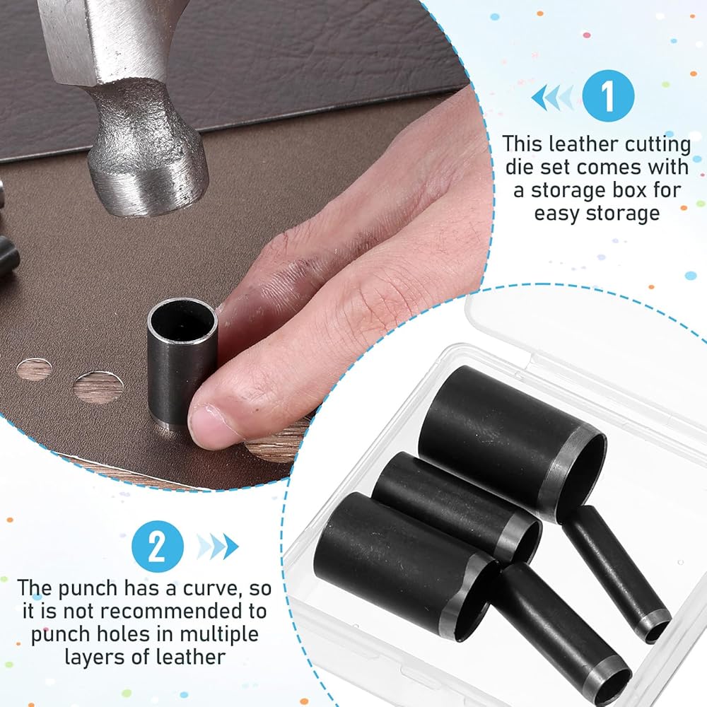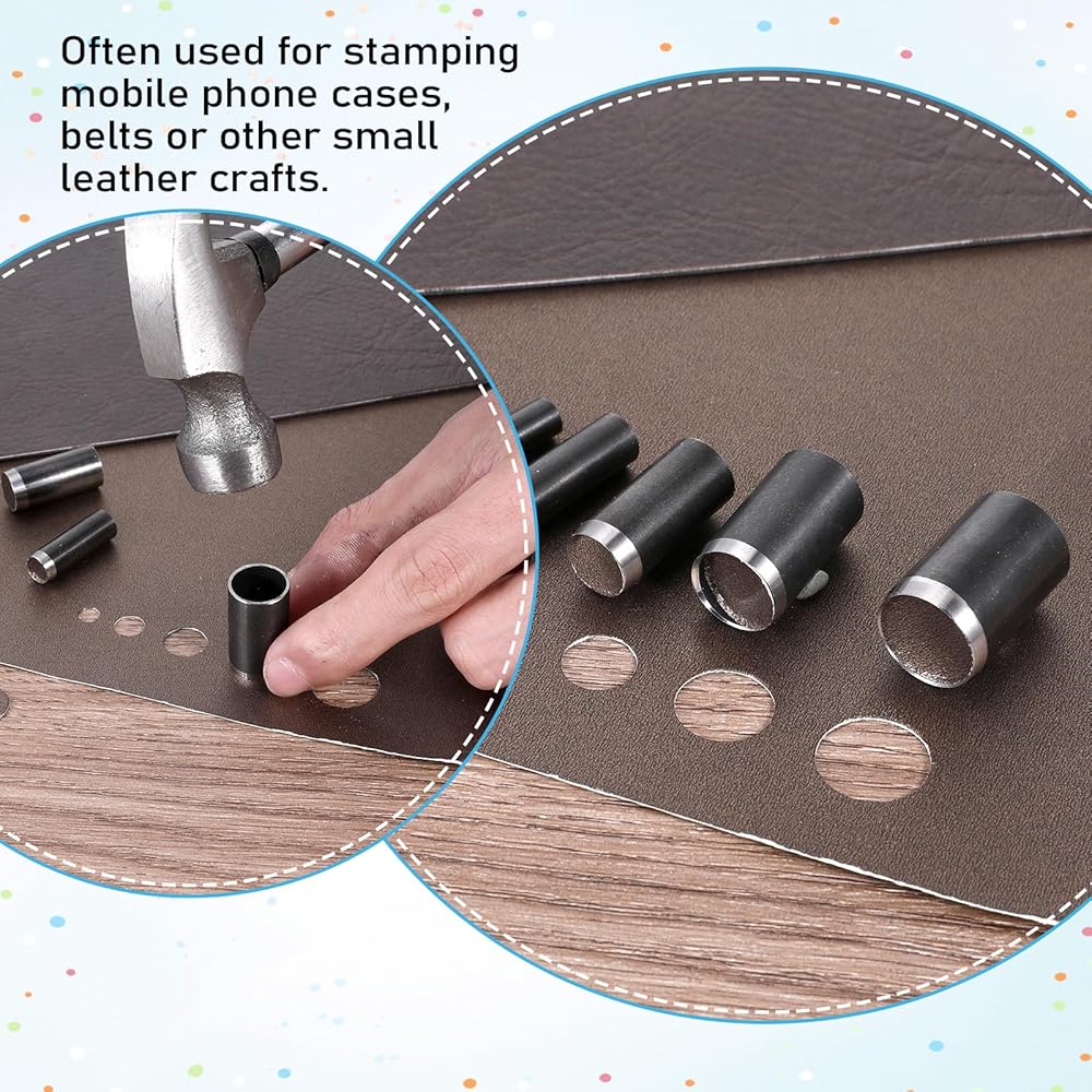 Wide Application: The round leather hole punch set is ideal for punching holes in leather, canvas and other soft materials, suitable for customizing belts, shoes, bags and various other leather accessories