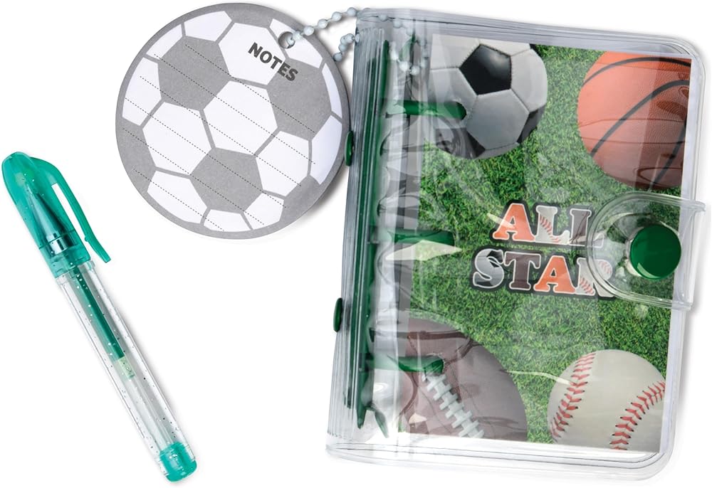 Make it fabulous and fun to keep all your important notes and ideas in one portable, pocket sized portfolio with this bright, joyous mini note taking set. Fun set features all the mini tools you need to jot down those great ideas every time a new one floats by in one convenient snap-closure portfolio! Set includes a mini gel pen, mini note and a die-cut pad of lined sticky notes that look just like a soccer ball - what a kick!! It will be your favorite go-to for writing down everything from to-do lists to phone numbers to happy thoughts. Portfolio measures 4" high x 3" wide, perfect for carrying in a backpack or tote pocket, and the set comes in a clear box ready for giving!