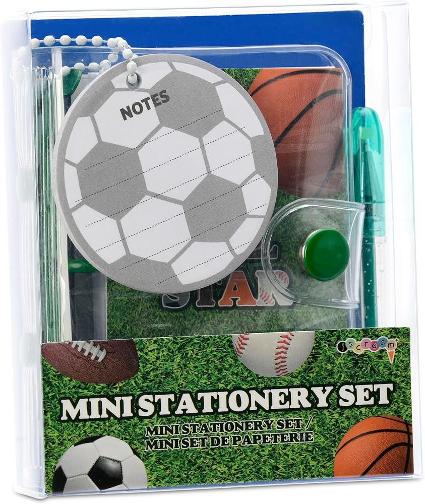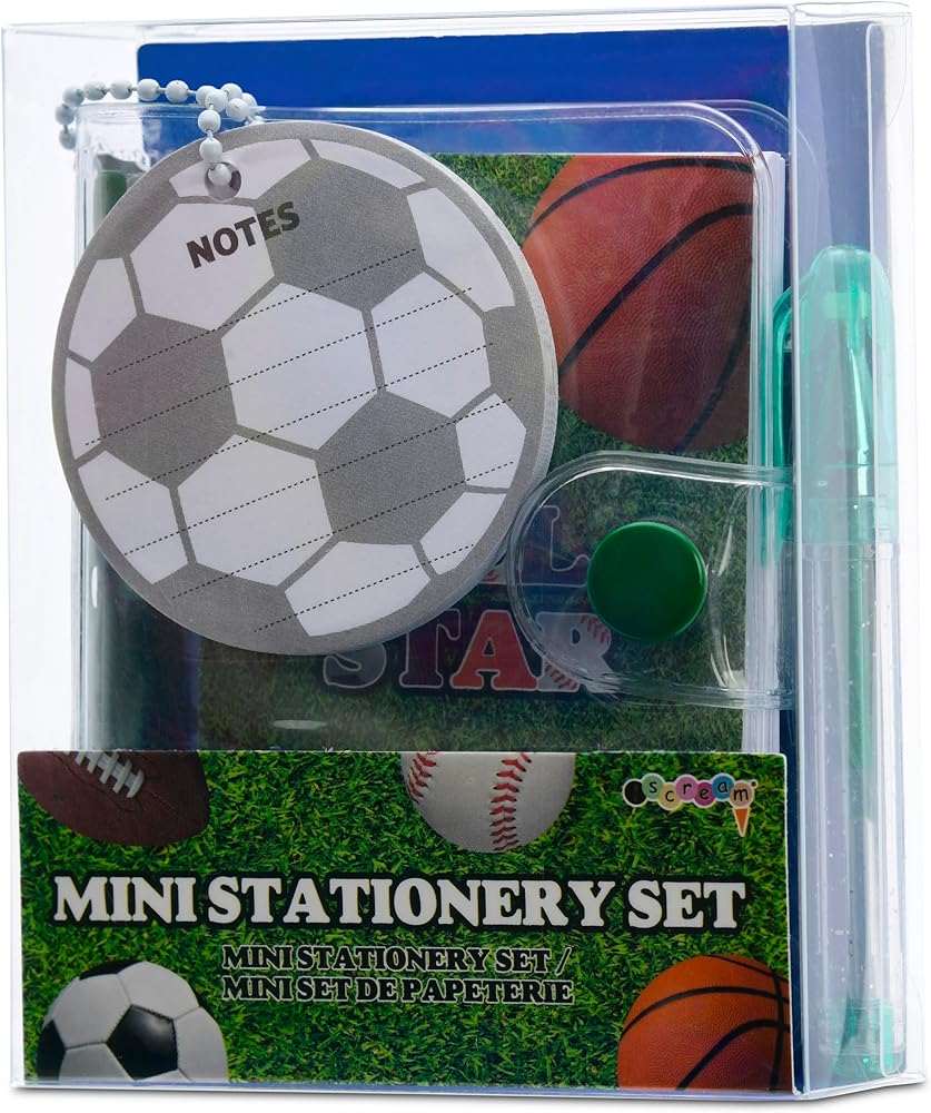 • Set includes a mini gel pen, mini note and a die-cut pad of lined sticky notes that look just like a soccer ball - what a kick!!