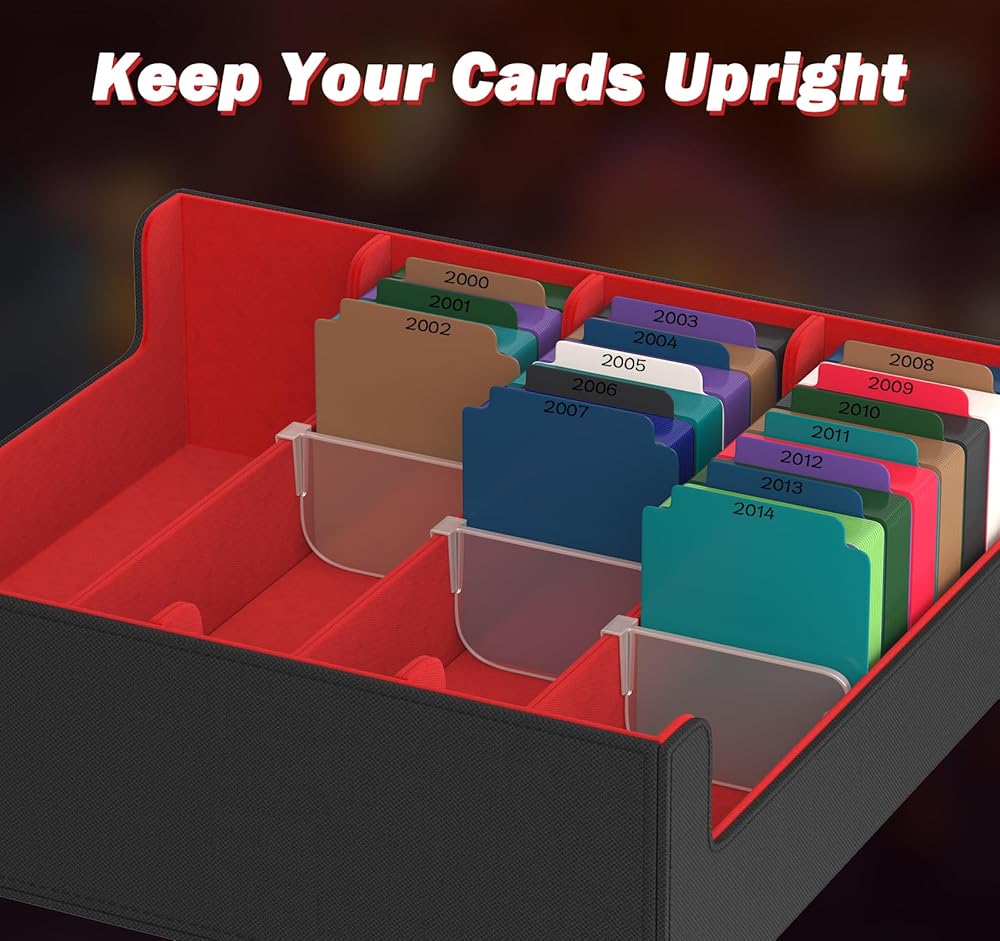مثالي لهواة جامعي البطاقات: علبة البطاقات الخاصة بنا مصممة لتخزين متعدد الاستخدامات للعبة المختلفة للبطاقات وبطاقات MTG وبطاقات رياضية ، مثل كرة القدم وكرة السلة وبطاقات البيسبول لتحسين الكفاءة