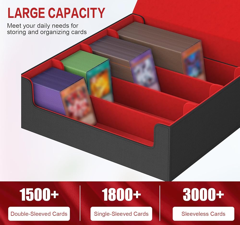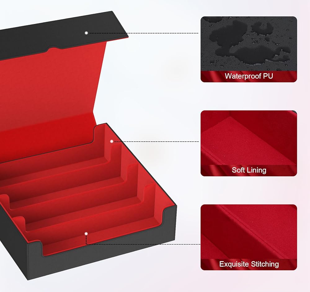 3000+ سعة كبيرة: مع تصميم 4 صفوف تمت ترقيته ، يزيد صندوق سطح البطاقة هذا بنسبة 33.3 ٪ ؛ الحجم 12.59 × 11.42 × 4.14 بوصة ؛ تمتلك أكثر من 3000 بطاقة غير مسبقة ، و 1800+ بطاقة أحادية الأكمام ، أو 1500 بطاقة قياسية ذات حجم مزدوج المزدوج