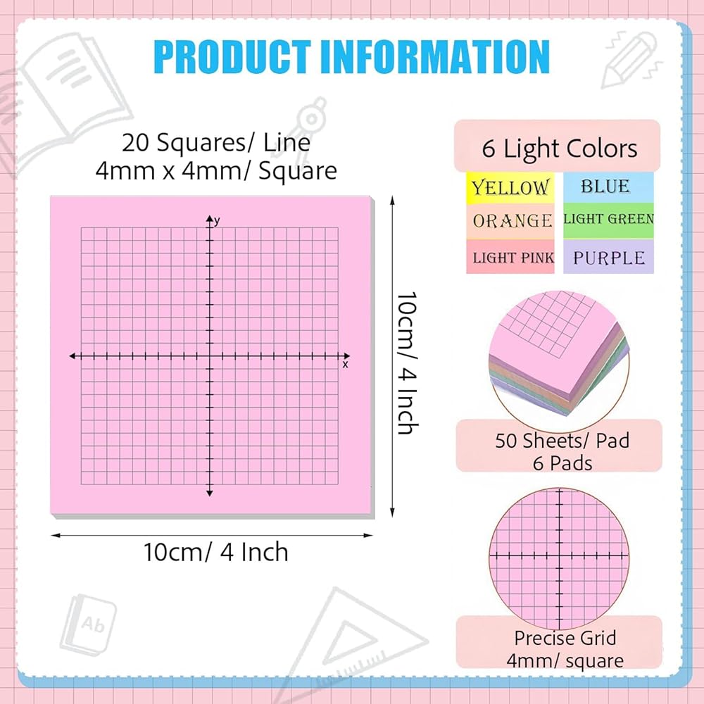 Greachieve- Graph Paper Sticky Notes in 4 in. x 6 in. feature good sticking power. White notes with blue grid-lines notes are great for techies, teachers and students.Great for sketches or to keep to-do lists organized. 6 Pads/Pack, 50 Sheets/Pad.