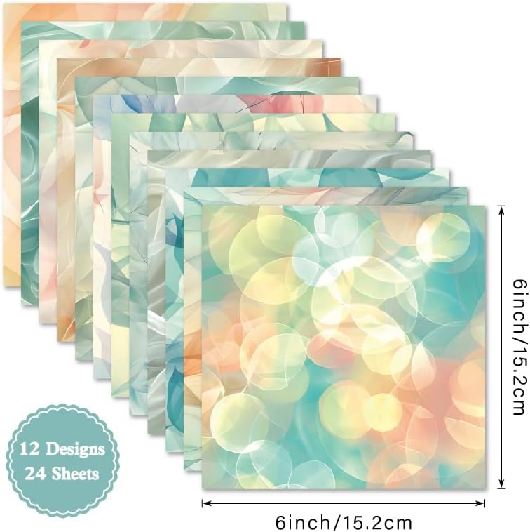 Our scrapbook paper set offers 12 distinct designs, and 2 sheets per design, each sheet measures 6'' x 6''.