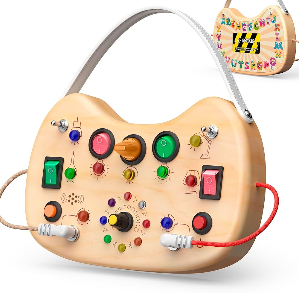 أطفال صغار Montessori Wooden Busy Board مع LED Light ، Switch Board Car Ride Airplane Travel ، عيد الميلاد ، هدية عيد ميلاد للفتيان والبنات من 1 إلى 3 سنوات