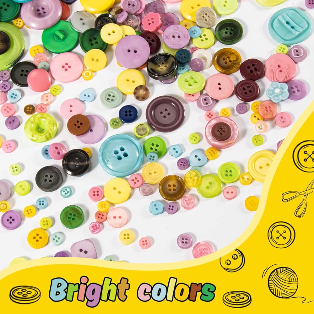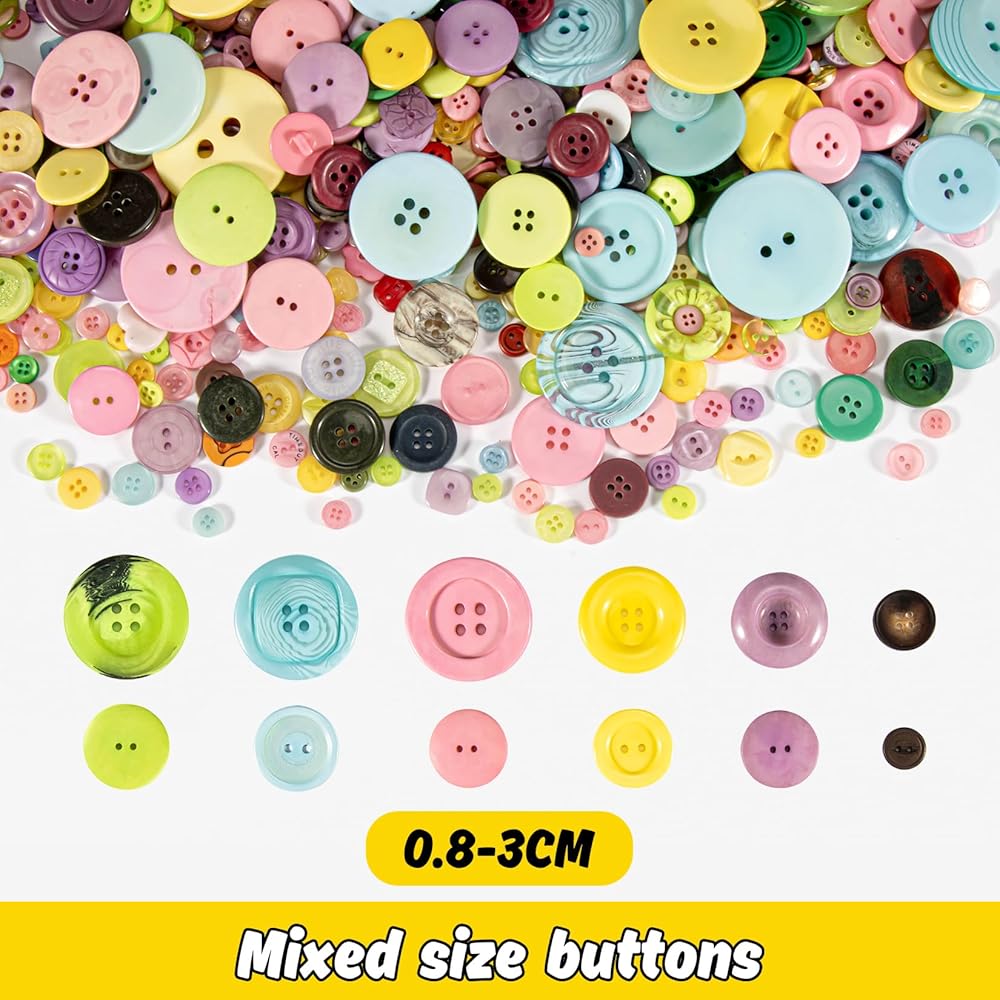 Great Quantity & Excellent Price:There are about 700pcs resin buttons of assorted sizes and mixed colors in the package. The net weight of the buttons is about 400 grams