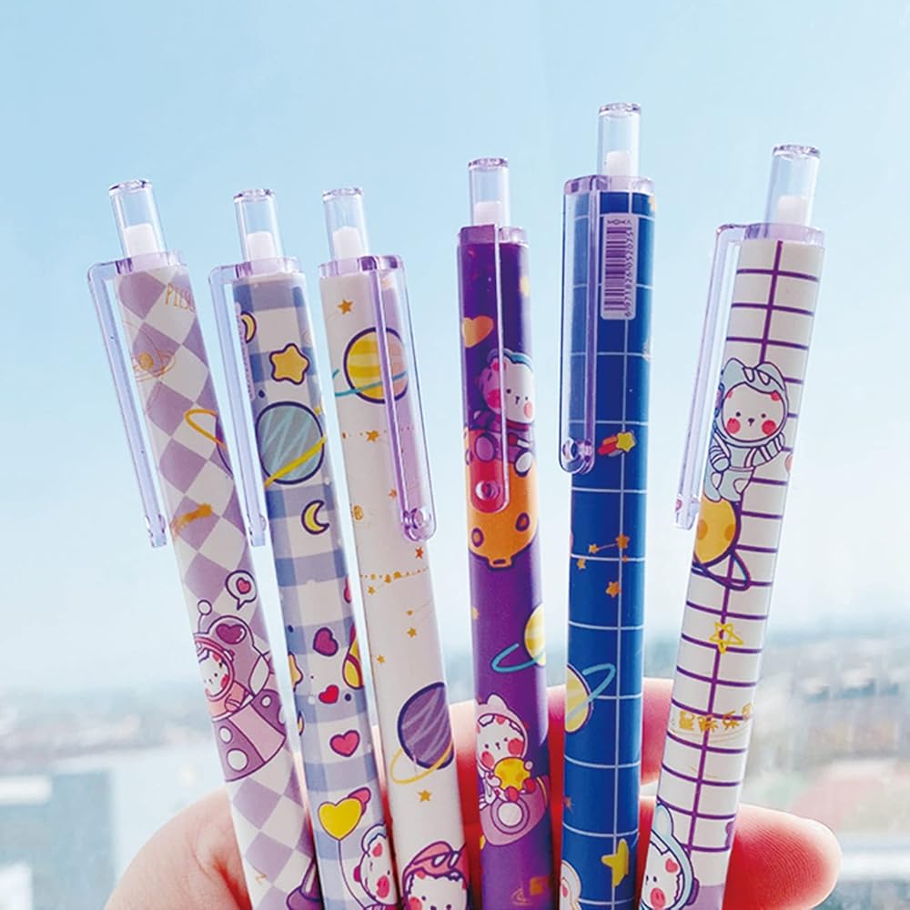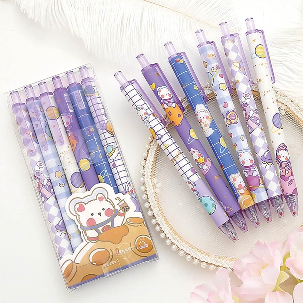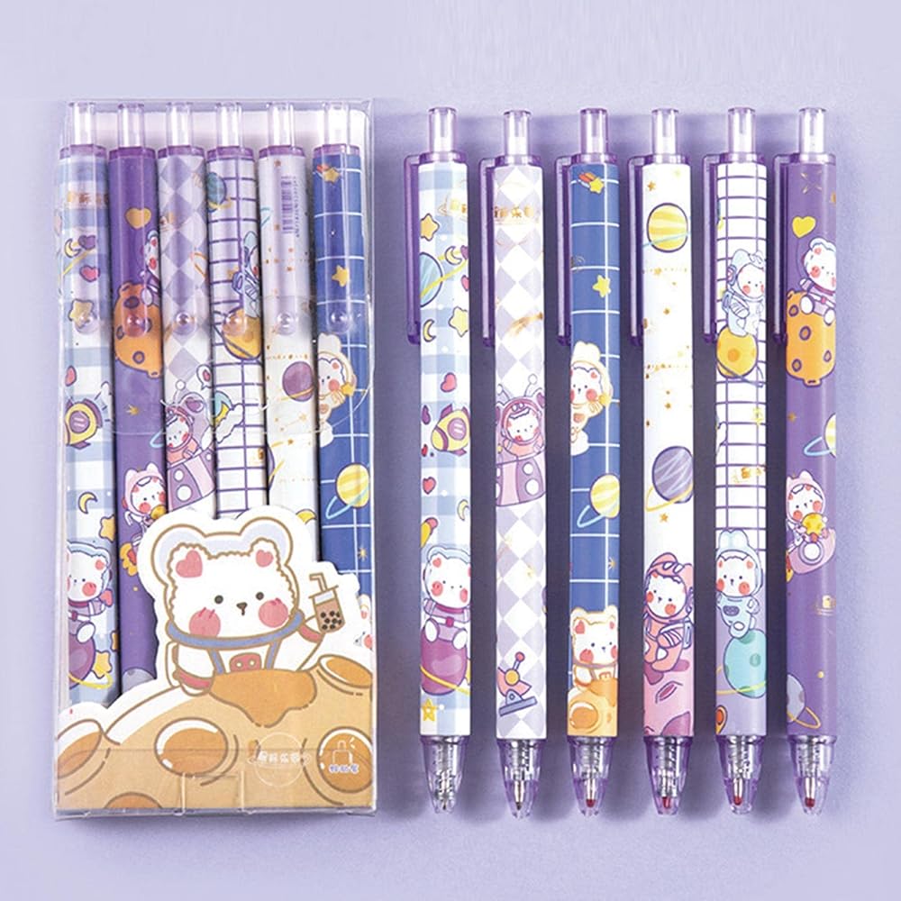 Cute Retractable Pen: The cute gel ink pens are made of plastic material, 6 pieces cartoon pens with different patterns and appearance colors, so cute, perfect pens for women and girls.