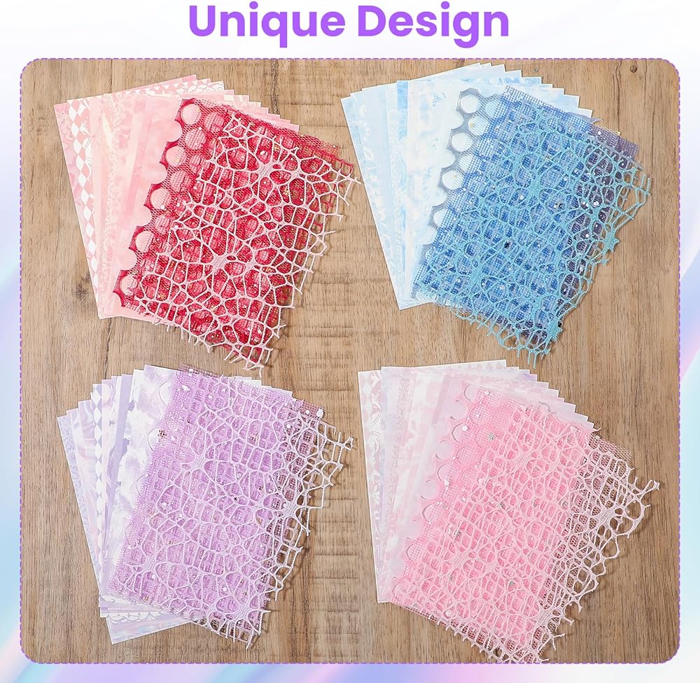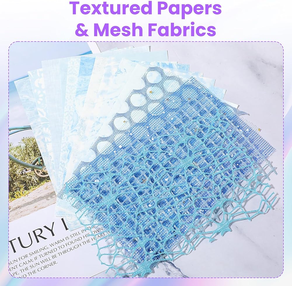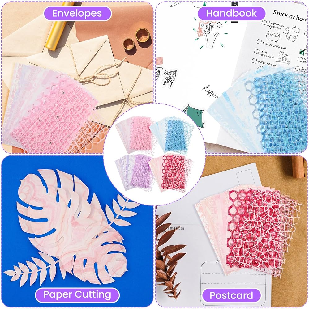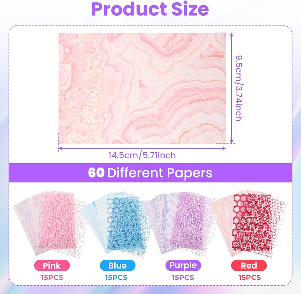 Variety Textured Paper: 4 pack, 60 pieces assorted scrapbooking paper and mesh fabric in various colors, enough quantity with assorted paper types to meet your large and diverse decorating or scrapbooking needs