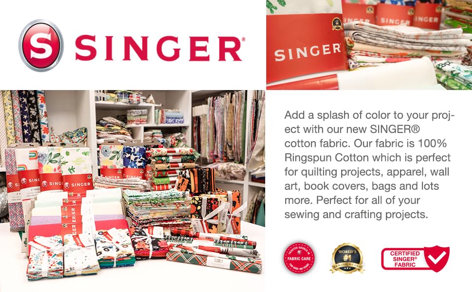Add a splash of color to your project with our new SINGER® FABRICS 100% Ringspun print cotton fabric. Our SINGER® FABRICS is perfect for quilting, apparel, and more! Perfect for all of your sewing and crafting projects. 100% Ringspun Cotton. 44 inches wide. Cut by the yard, can order single yard increment with 15 continuous yards maximum. Imported product. Not intended for children's sleepwear. Care: Machine wash gentle cold with like colors, nonchlorine bleach, tumble dry low, warm iron.