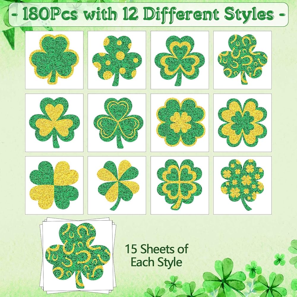 【مجموعة قيمة】 ش. يحتوي الوشم اللامع في يوم باتريك على 180 ٪ مع 12 تصميمًا فريدًا ، وكل ملصق ملصق للوجه Shamrock مستقل ، بحجم 1.6 × 1.6 بوصة. تم تصميم نمط ملحقات عيد القديس باتريك في موضوع شامروك يوم القديس باتريك ، وهو مناسب لهدايا عطلة الأطفال