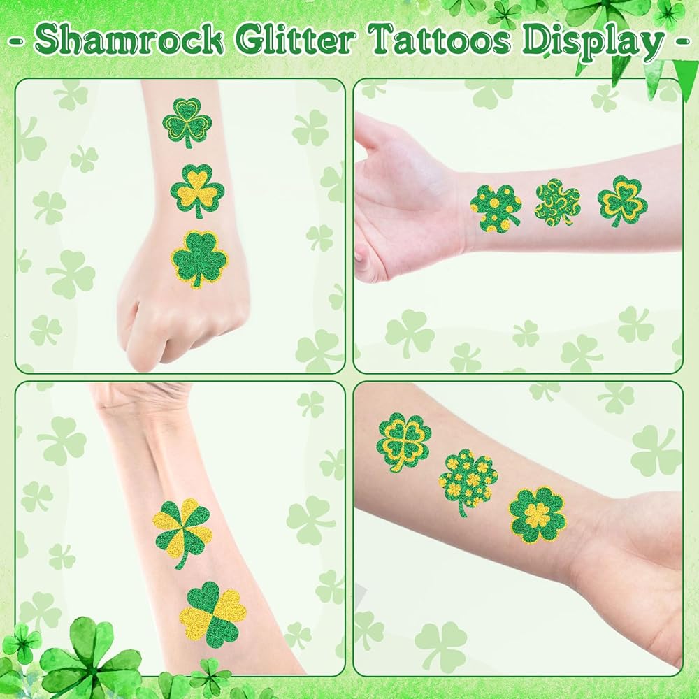 【شارع. موضوع يوم باتريك】 شارع. تحتوي مجموعة الوشم المؤقتة لعيد باتريك على مجموعة متنوعة من أنماط ملصقات Farmling Shamrock Face اللمعان و 12 أنماط شامروك المحظوظة بأشكال مختلفة ، فريدة وجميلة ، مصممة خصيصًا للمهرجانات والحفلات ، يمكنها جذب جاذبيتك مع مكياج عيد القديس باتريك