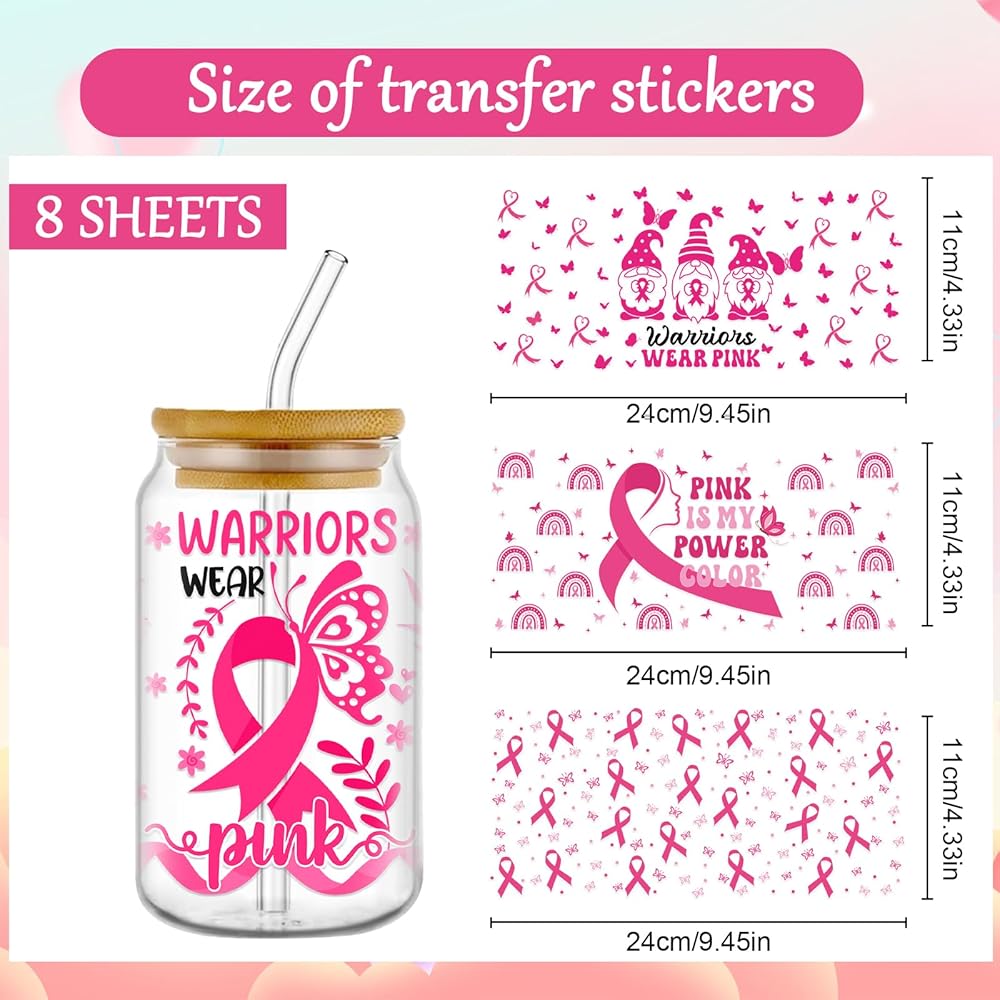 الوعي بسرطان الثدي الأشعة فوق البنفسجية DTF Cup Wrap: UV DTF Cup لفات الملصقات لديها شريط وردي سرطان الثدي ، الفراشة ، قوس قزح وغيرها من أنماط. يمكنك استخدام ملصقات نقل UV DTF الثمانية هذه مع موضوع أنثى لتزيين الأشياء من حولك. ستصبح هذه الأشياء المزينة بلف كأس UV DTF لافتة للنظر