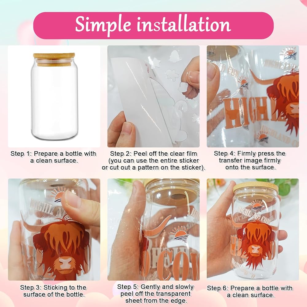 ملصقات عالية الجودة للأشعة فوق البنفسجية DTF: مصنوعة ملصقات لفات UV DTF Cup Wrap من ورق نقل الأشعة فوق البنفسجية الموثوقة. لفات الأشعة فوق البنفسجية DTF ل 16 أوقية مقاومة للماء ولها التصاق قوي. سوف تلتزم ملصقات نقل الأشعة فوق البنفسجية DTF بحزم على السطح الزخرفي ولن تسقط