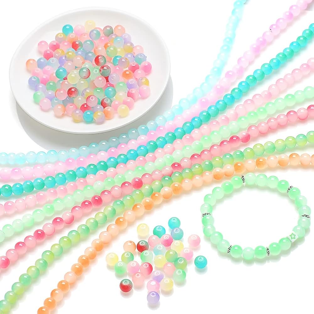 200 pcs 8mm متدرج زجاجي الخرز شقرا حبات ملونة جولة الجولة الأحجار الكريستال سحر سوار سوار لصنع المجوهرات الوردي