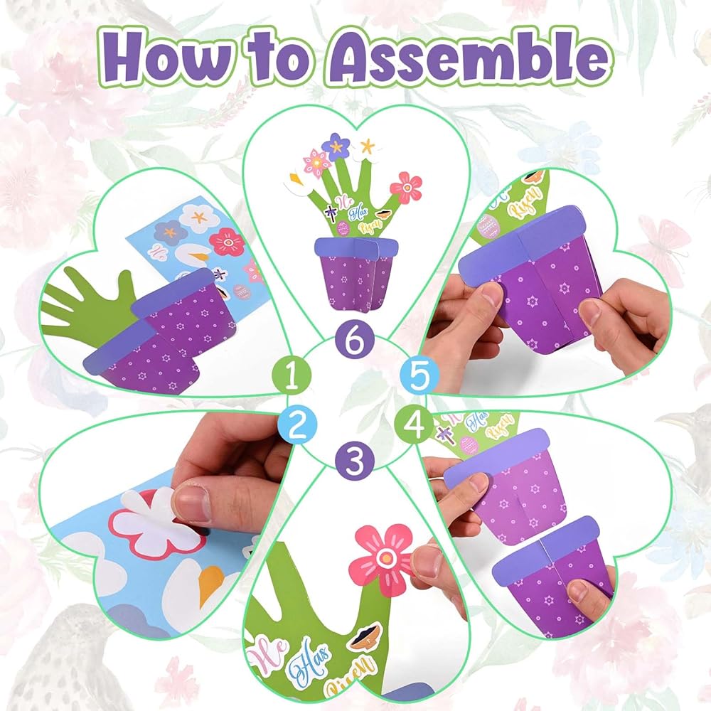 Package Include: You will receive 24 handprint flowerpot cards, 24 flower pot cards, and 24 Easter stickers, which are in sufficient quantity, allowing you to fully unleash your creativity and assemble them into interesting handprint flower pot decorations.