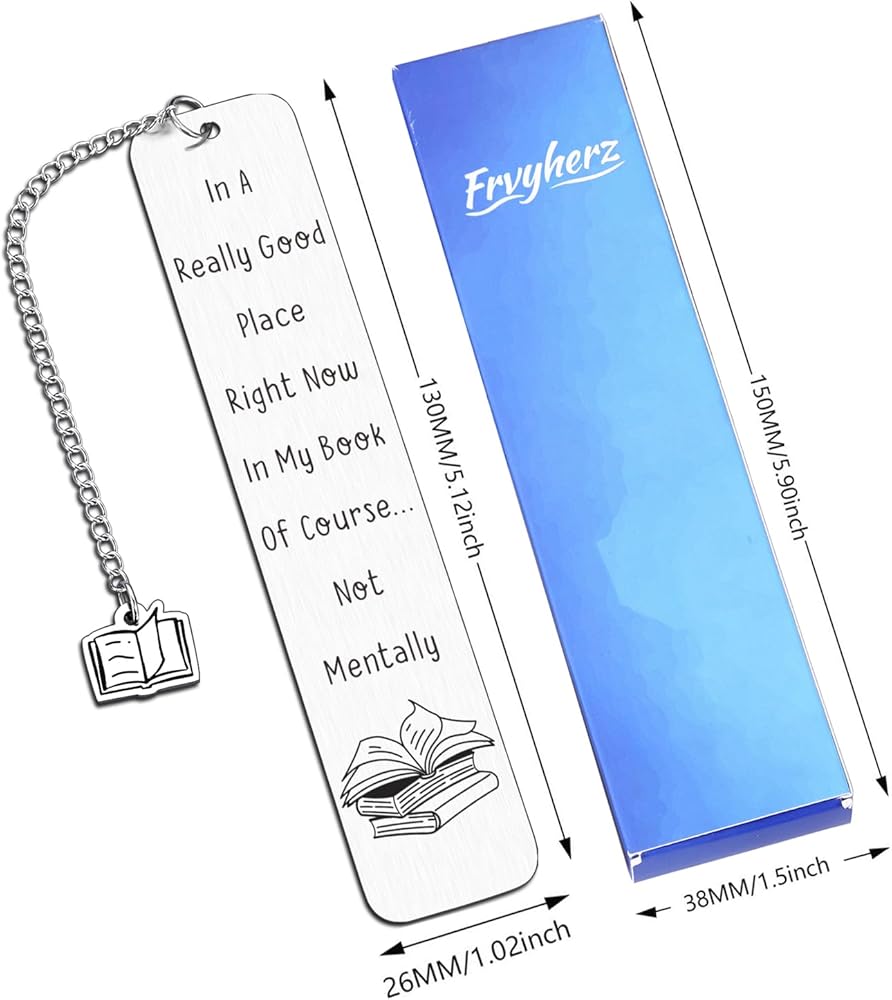 • Stocking stuffers for men women: this exquisite bookmark engraved with "in a really good place right now in my book of course... not mentally", is a good book accessory for people who is a book lover or spicy reader. It features a cute book pendant. Ideal for christmas gifts for women, stocking stuffers for teen girls boys, christmas gifts for teen girls, stocking stuffers for kids, santa swap gift exchange...This gift can bring surprise to people who receives it, making the day more amusing!