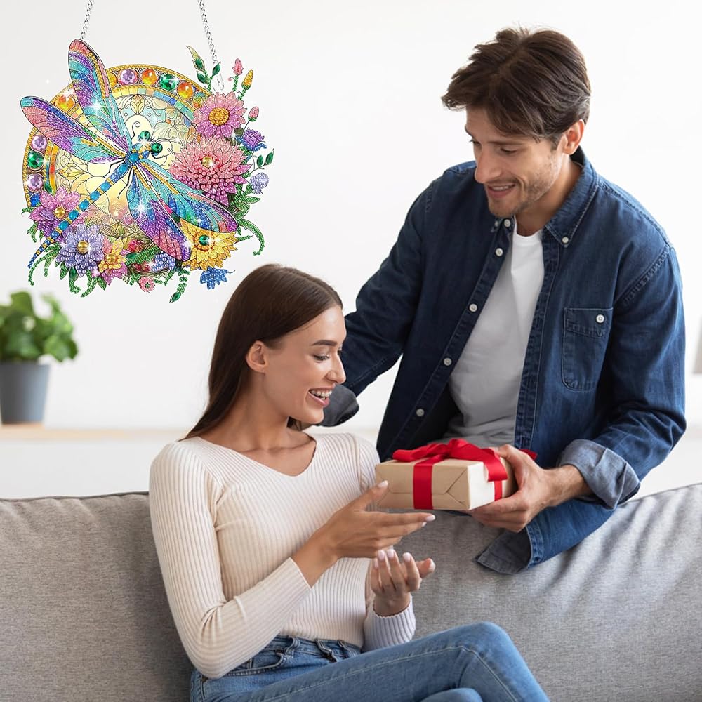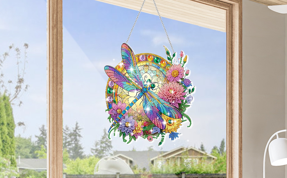 Eeekit Diamonds Painting Suncatcher ، DIY Diamond Art Hanging Ornament ، Double -Side Rhinestone Wall Window Window Hoft