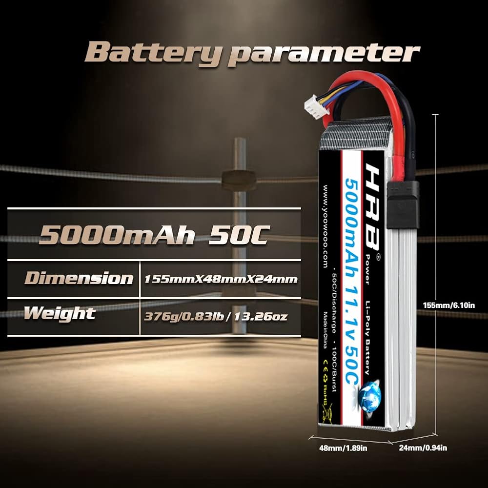 - 11.1V 5000mAh سعة البطارية Lipo: 5000 مللي أمبير في الساعة ، الجهد: 11.1V ، موصل الموازنة: JST-XHR