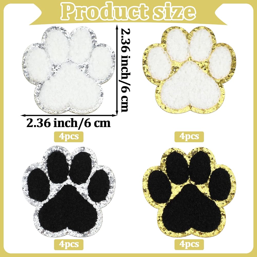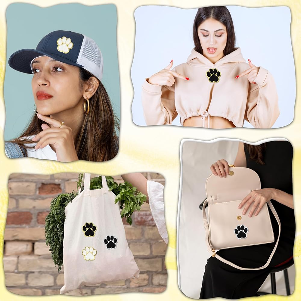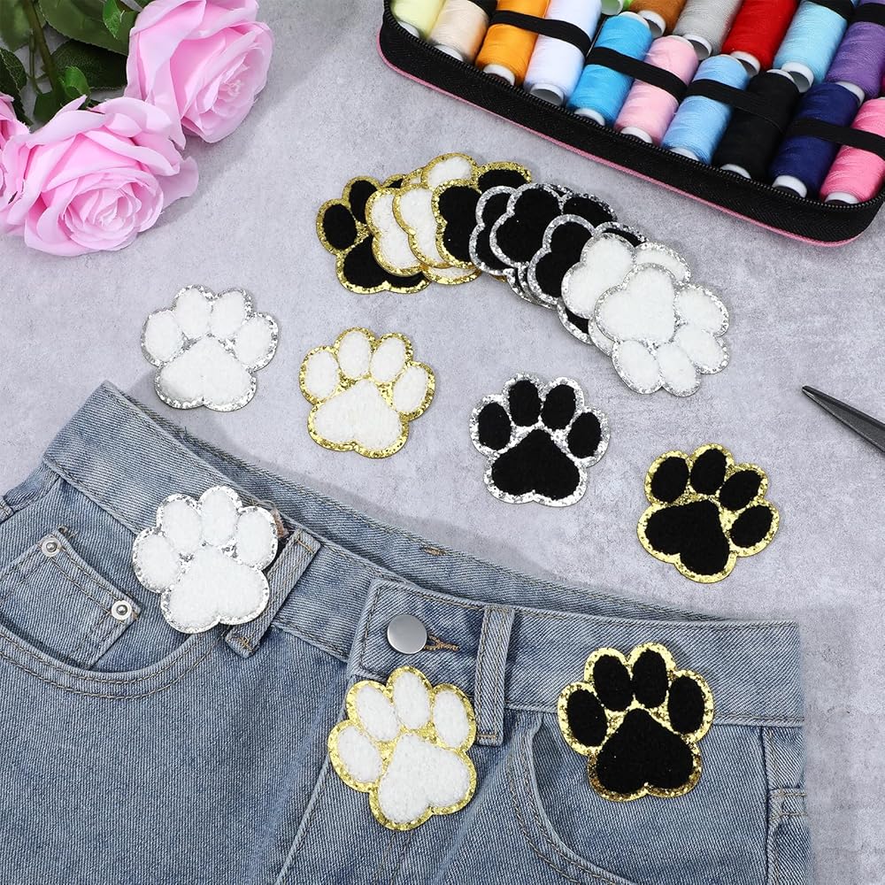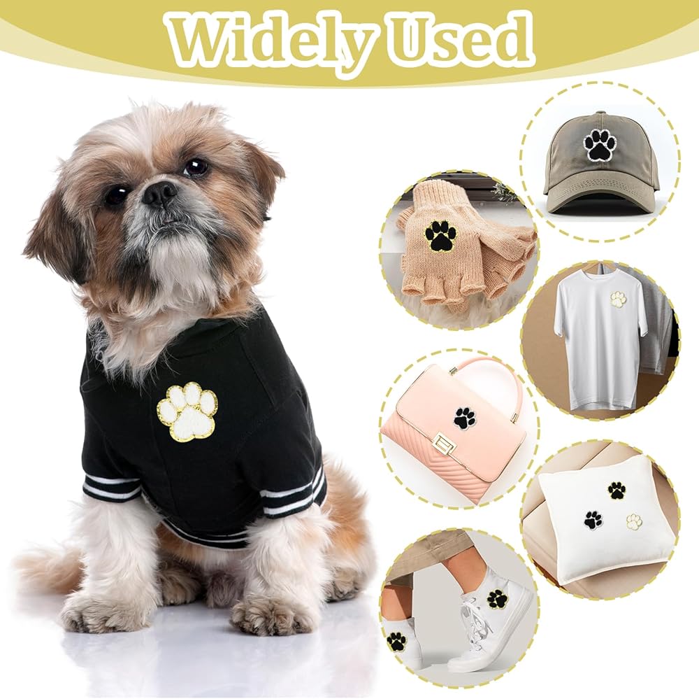 【Soft Chenille Patches】Our self-adhesive paw print iron-on patches are made of chenille fabric, which is soft and comfortable with good elasticity and ductility. The edge of the iron-on patch is designed with gold, which will sparkle under the light, adding a sense of fashionable and sophistication