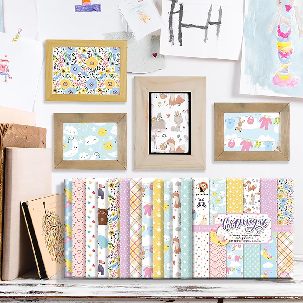 Bring your scrapbooking and craft projects to life with this 24-sheet pack of Baby Good Night Cardstock Scrapbook Pattern Background Paper.