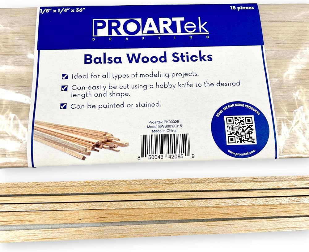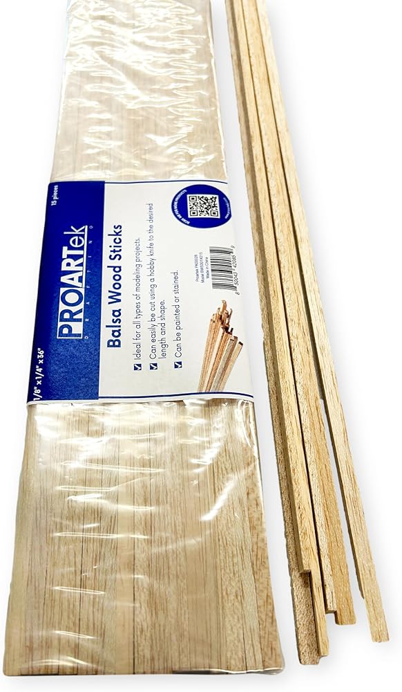 - Balsa Wood Sticks; 1/8" x 1/4" x 36" Inches in a Pack of 15 Pieces.