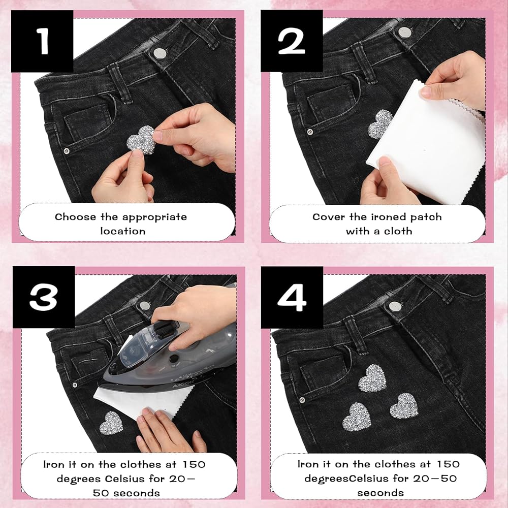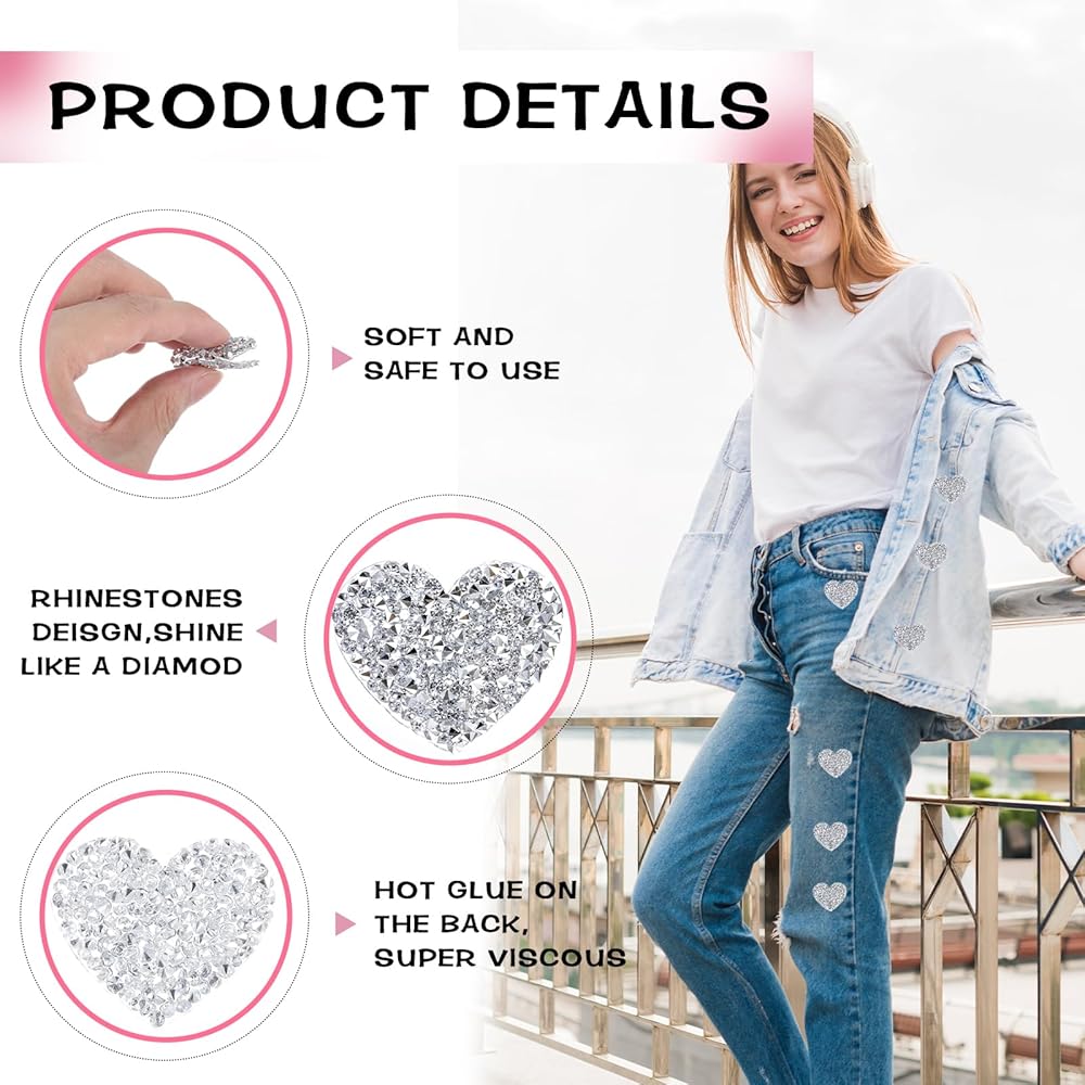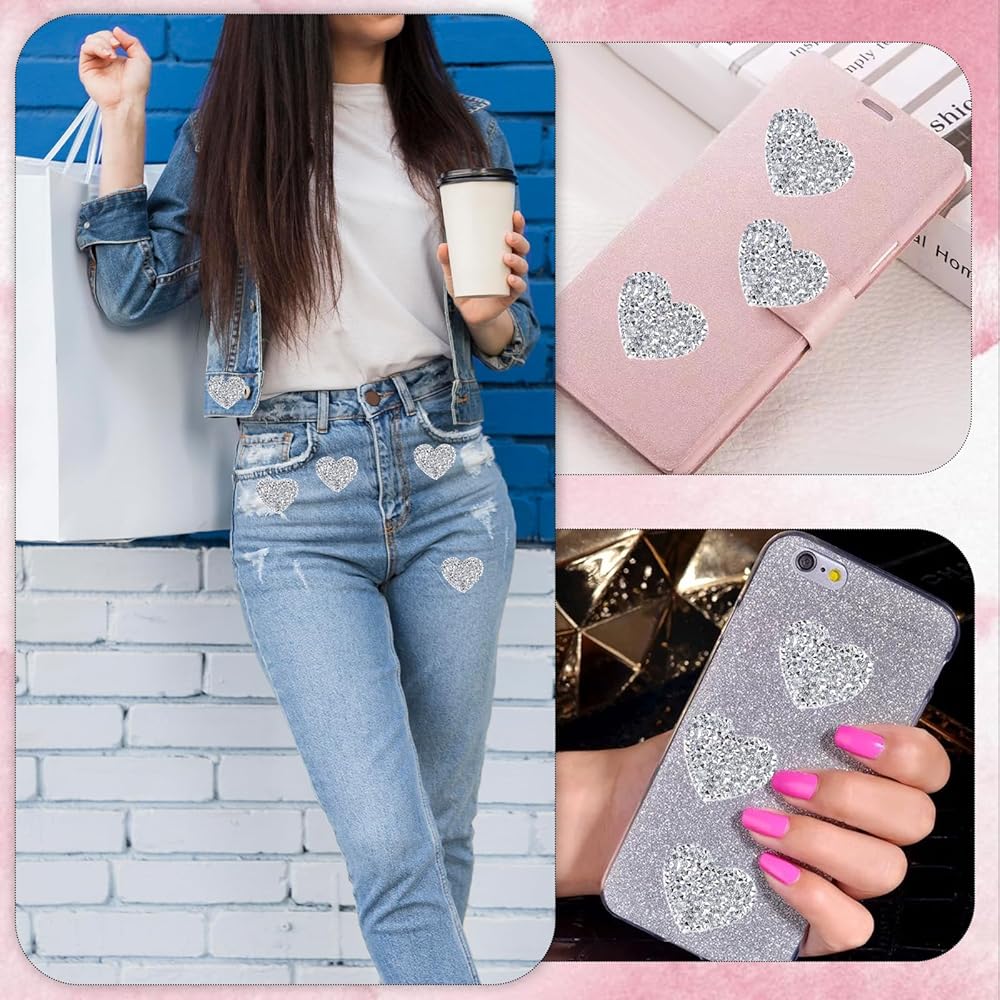 Wide application: The bling heart patches are suitable for repairing and decorating a variety of items such as clothing, T-shirts, jeans, hats, etc., adding personality and attractiveness to your items.