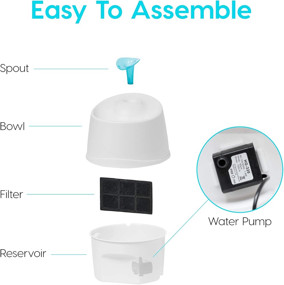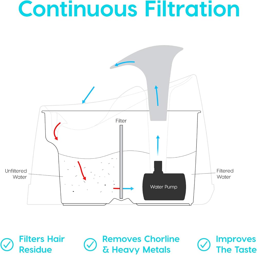 BETTER HEALTH: Included charcoal filter in the 5.5 cup pet water fountain that keeps your pets healthy and happy by preventing urinary tract infections and other related illnesses