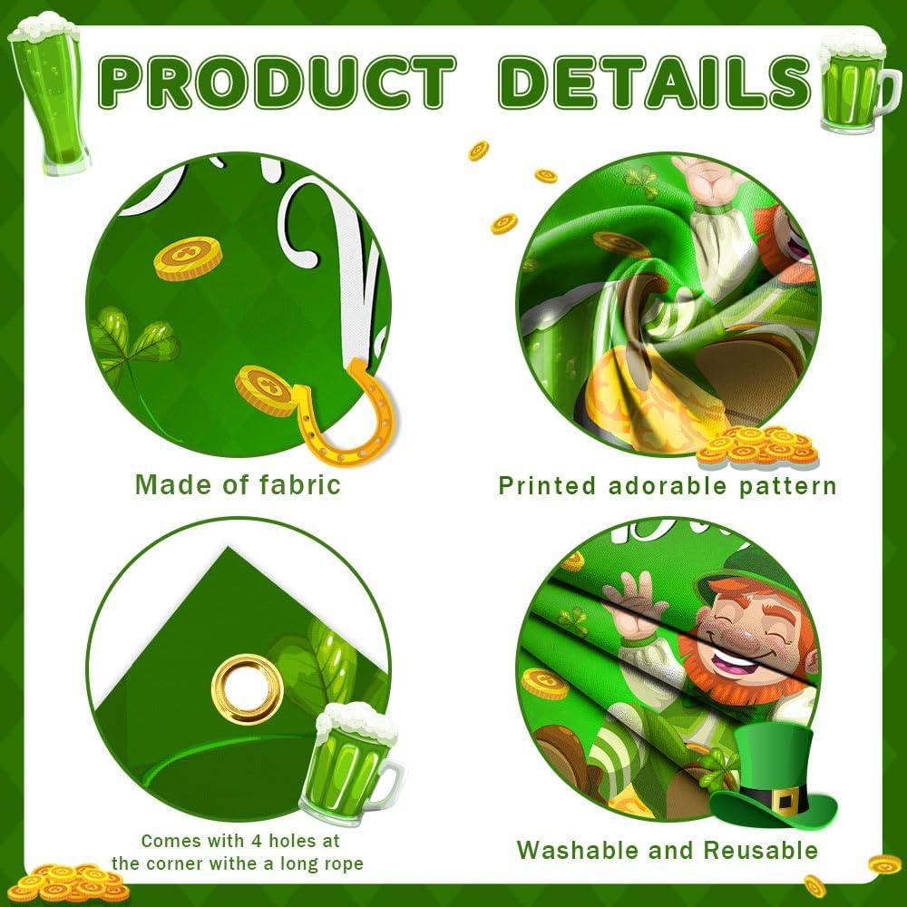 • Easy to Hang: This St. Patrick's Day banner is easy to hang, you just need to put the rope through the 4 hanging holes and hang it directly where you want to fix it, saving your precious time, suitable for both indoor and outdoor